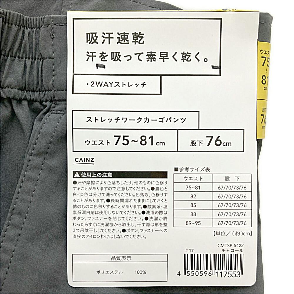 ストレッチワークカーゴパンツ チャコール ウエスト75-81cm 股下76cm | 作業着・作業服・安全靴 通販 | ホームセンターのカインズ