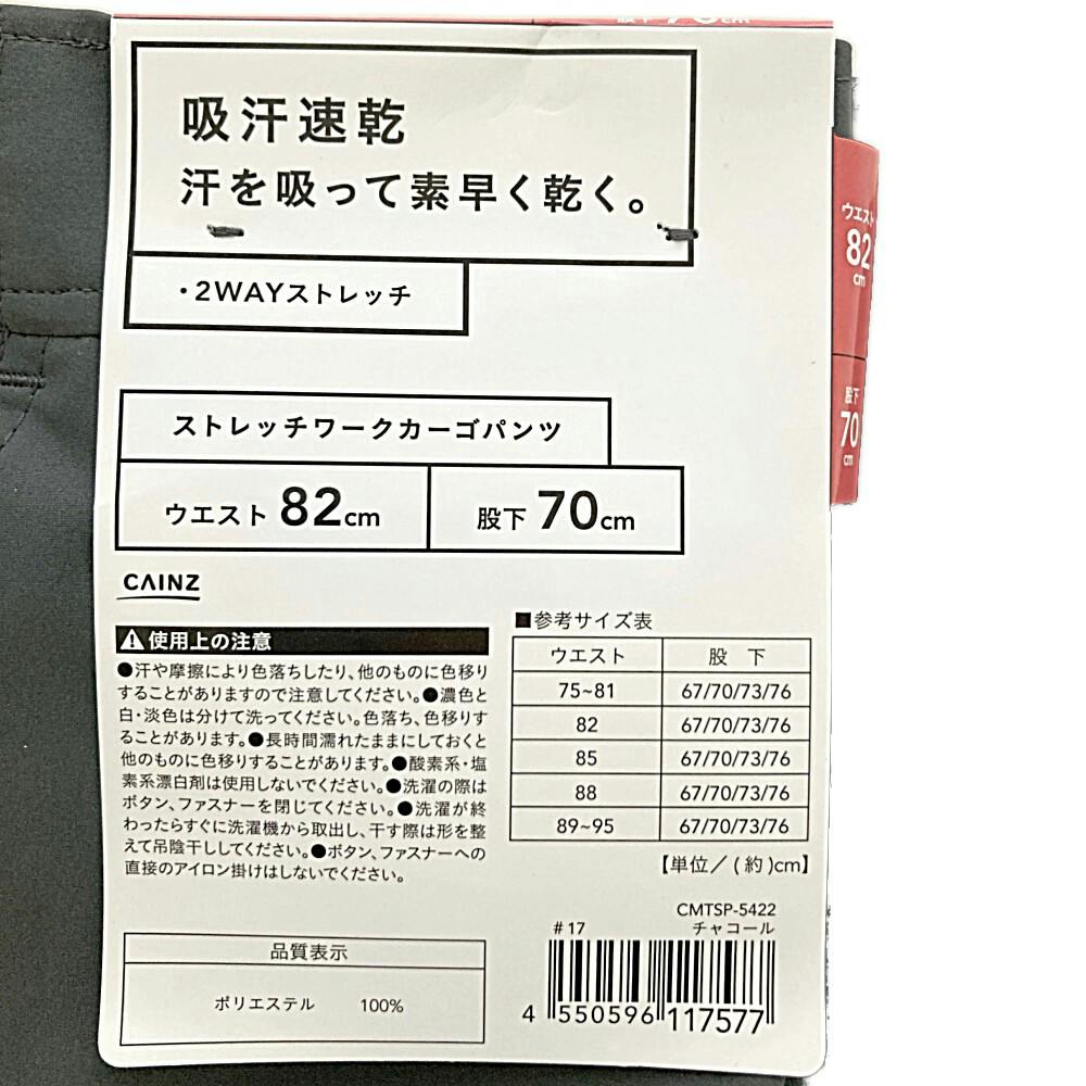 ストレッチワークカーゴパンツ チャコール ウエスト82cm 股下70cm