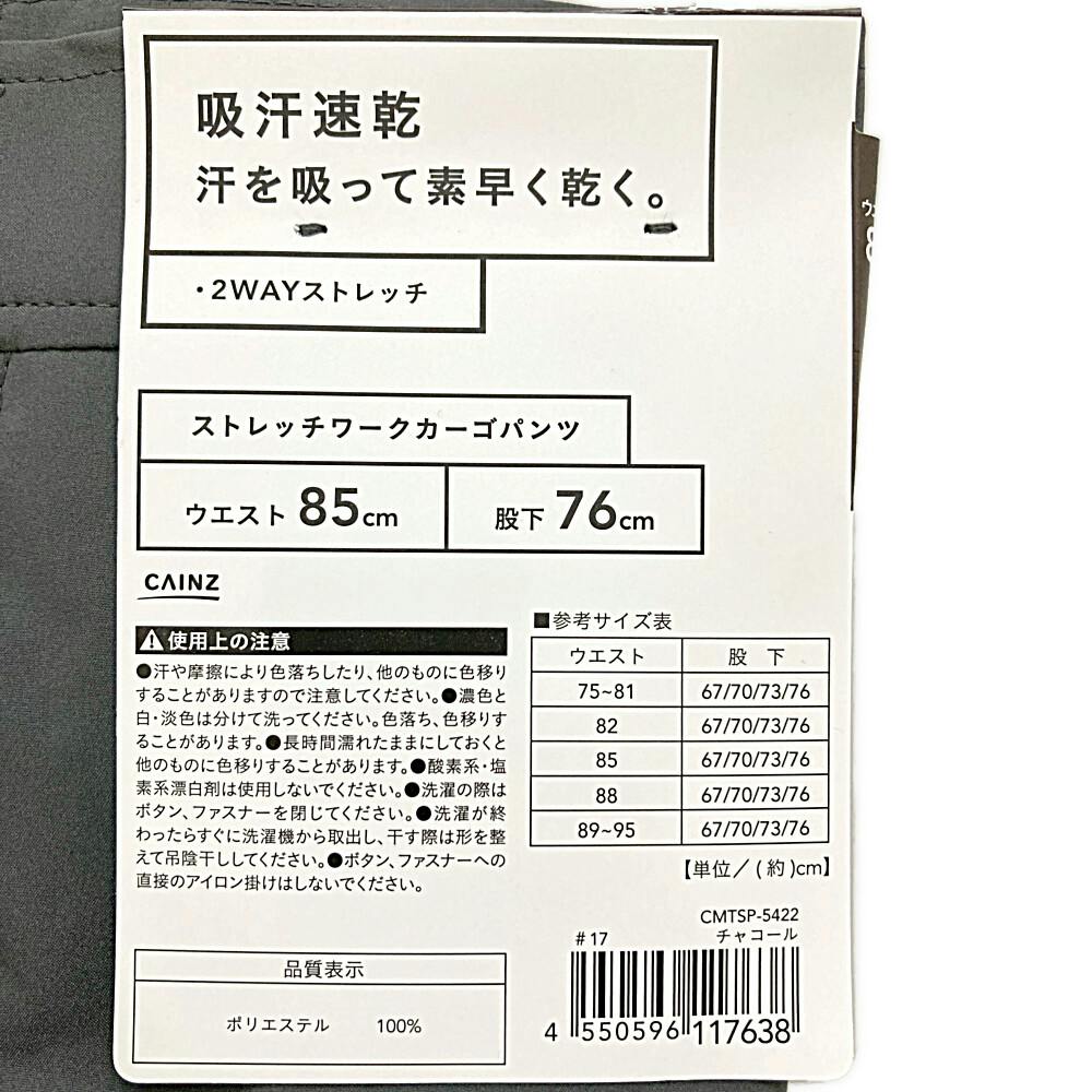 ストレッチワークカーゴパンツ チャコール ウエスト85cm 股下76cm