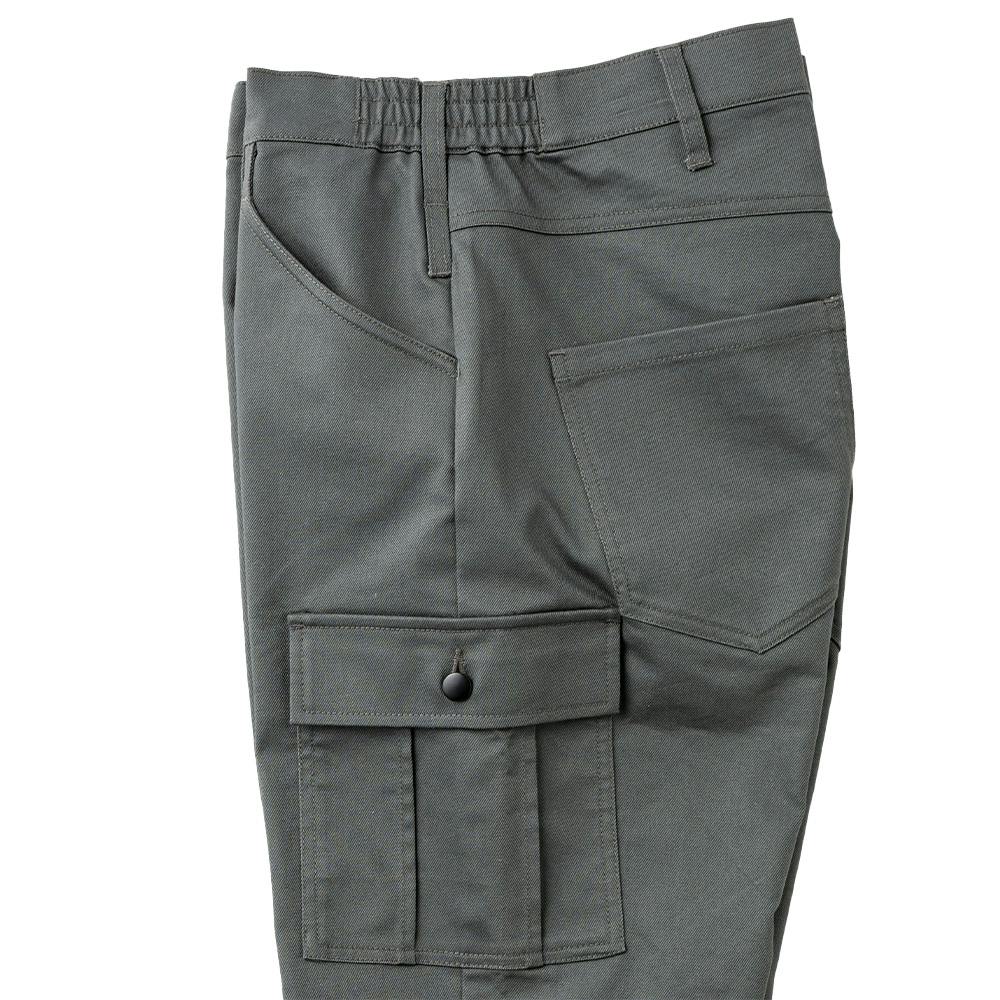 ●丈夫な綿混素材 ●サイドポケット付き ●ウエスト脇ゴム、フラップポケット、ダブルループ、ファスナーポケット