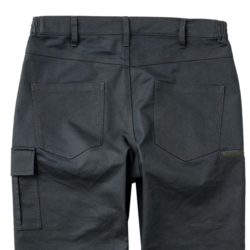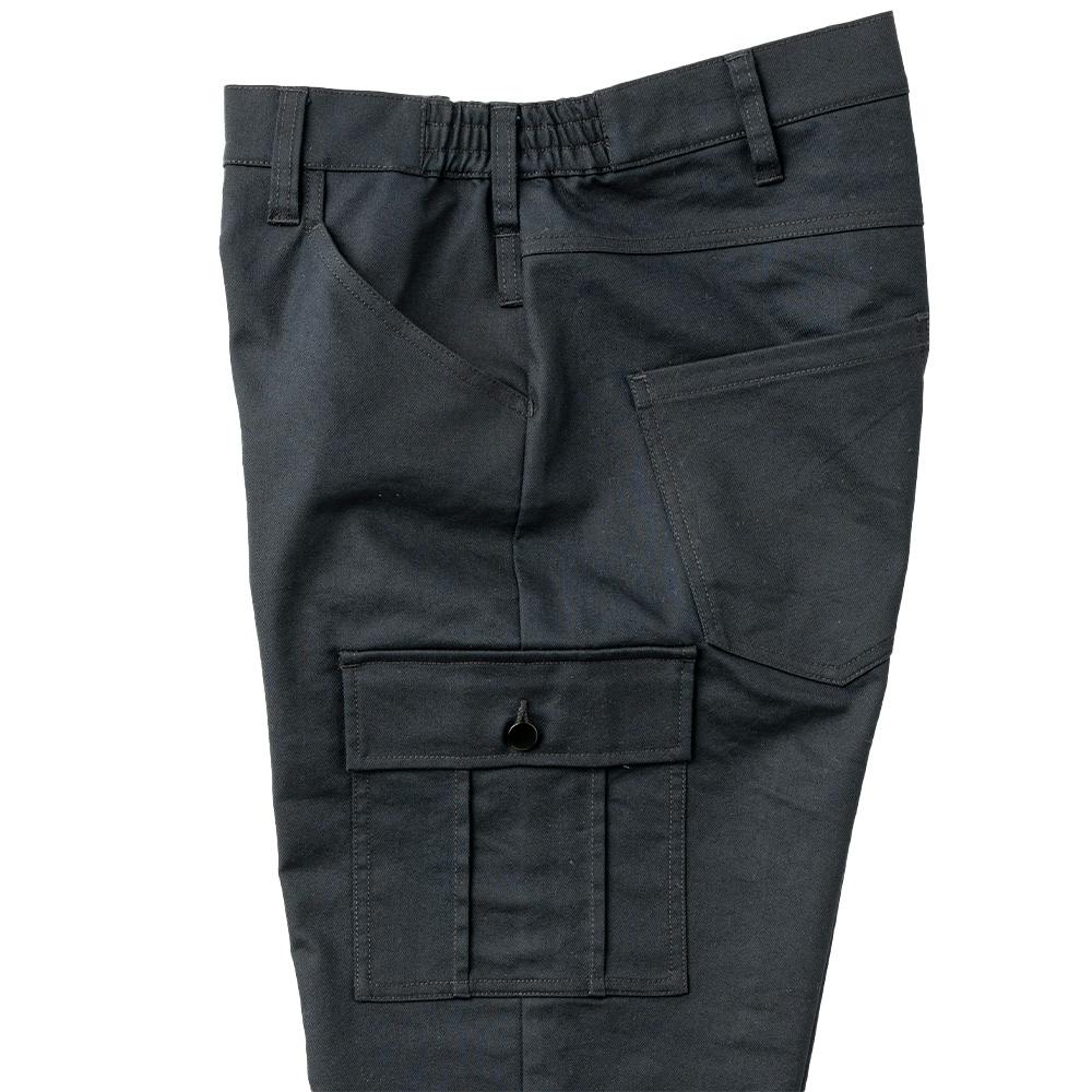 ●丈夫な綿混素材 ●サイドポケット付き ●ウエスト脇ゴム、フラップポケット、ダブルループ、ファスナーポケット