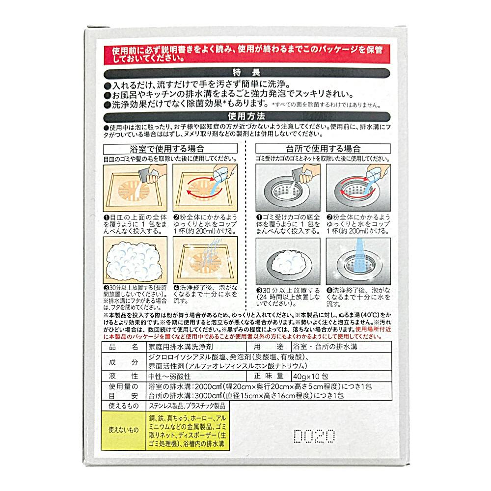 ●入れるだけ、流すだけで手を汚さず簡単に洗浄。●お風呂やキッチンの排水溝をまるごと強力発泡でスッキリきれい。●洗浄効果だけでなく除菌効果もあります。