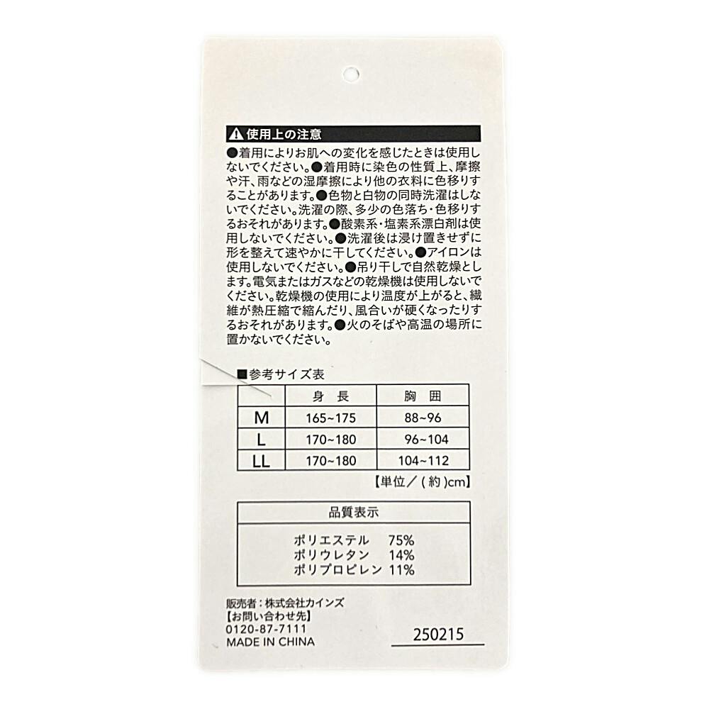 品質表示/ポリエステル:75%、ポリウレタン:14%、ポリプロピレン:11%