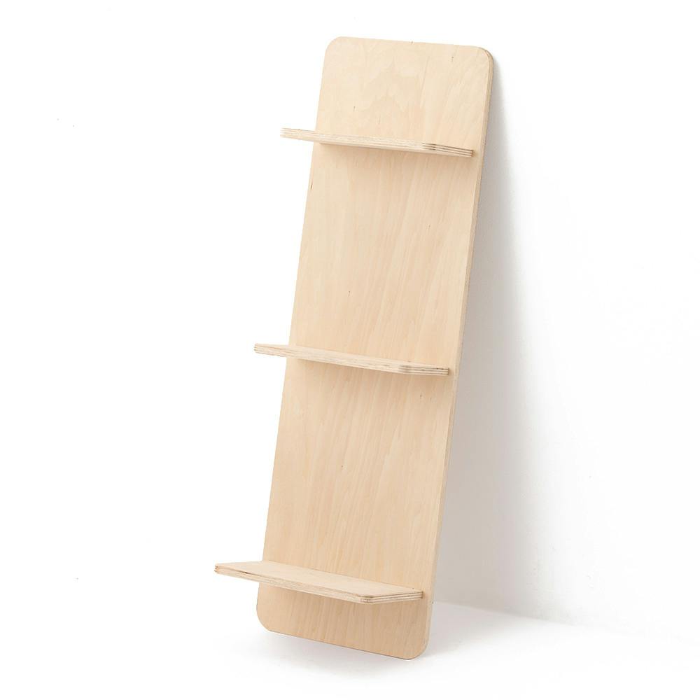 BOOK BOARDは最小限の要素で構成された「壁に立てかける本棚(シナ合板バージョン)」です。 狭い部屋でも軽やかに暮らしたい、配線類を隠す存在が欲しい、こだわりの本が映える本棚が欲しい。そんな人に向けた暮らしを楽しむミニマルな家具です。(デザイナー:上田一輝)