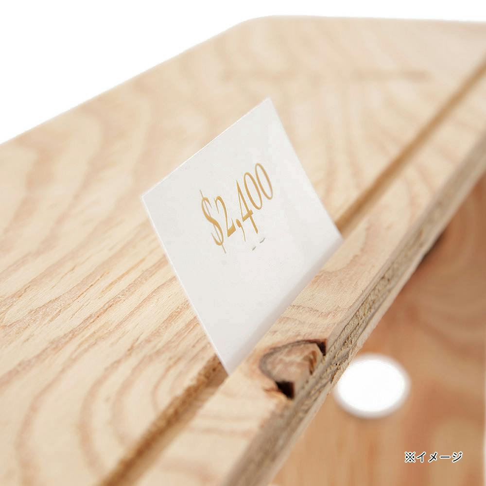 卓上に置くことができる商品ディスプレイです。20cm間隔で棚が3段のバージョンです。各棚は両面とも使用可能で、片面の前方には値札やカード型のものが立てられる溝が彫られています。もう片面は、溝が彫られていないフラットな面になっております