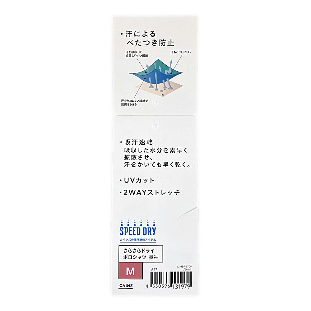 SPEED DRY さらさらドライポロシャツ 長袖 ブラック M