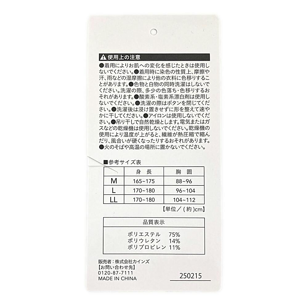 品質表示/ポリエステル:75%、ポリウレタン:14%、ポリプロピレン:11%