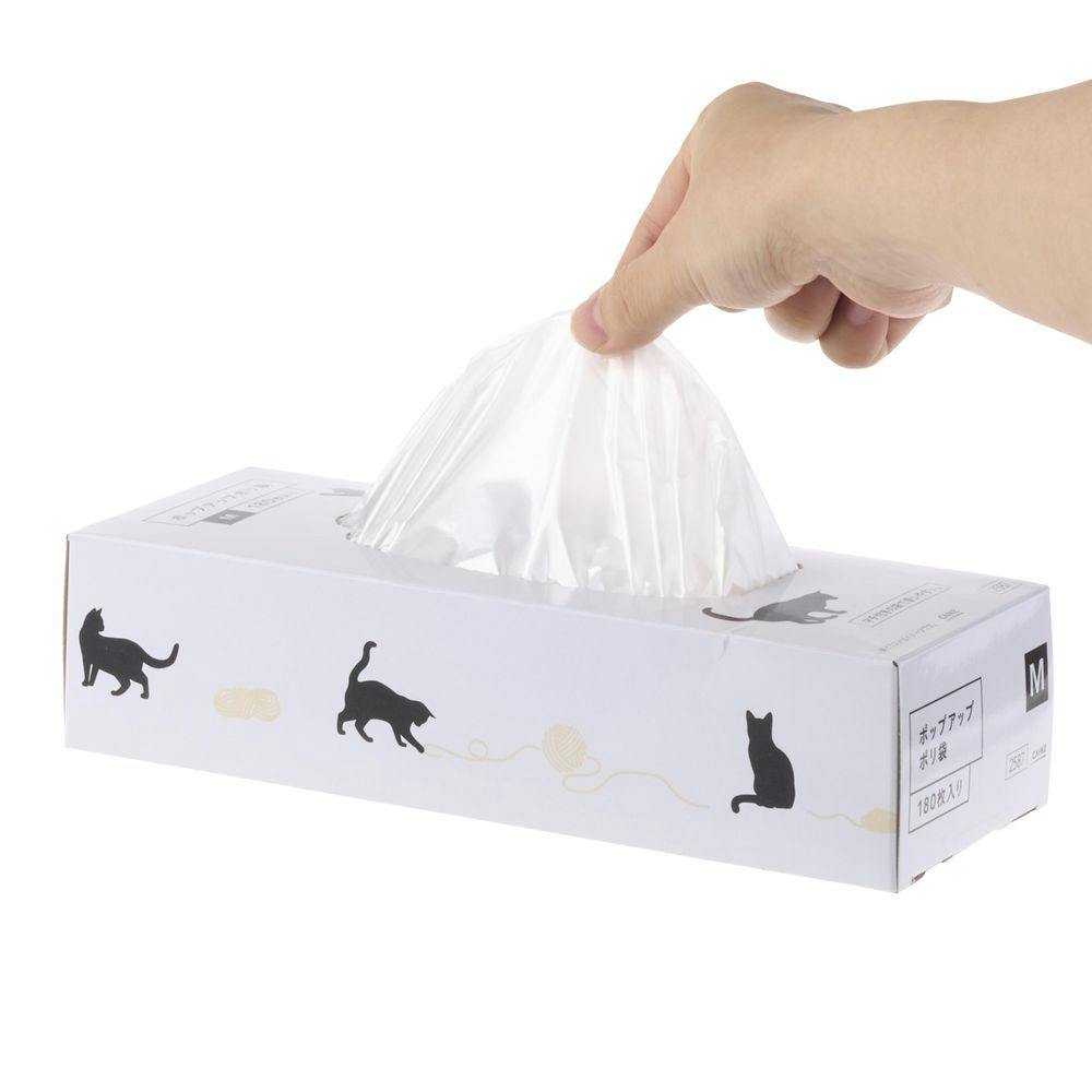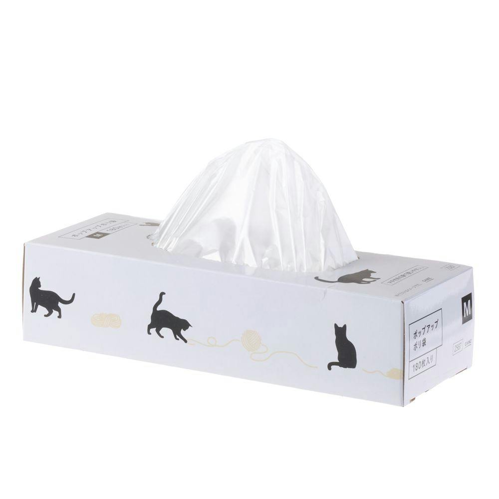 ポップアップポリ袋 マチ付 Mサイズ 180枚 キャットデザインB