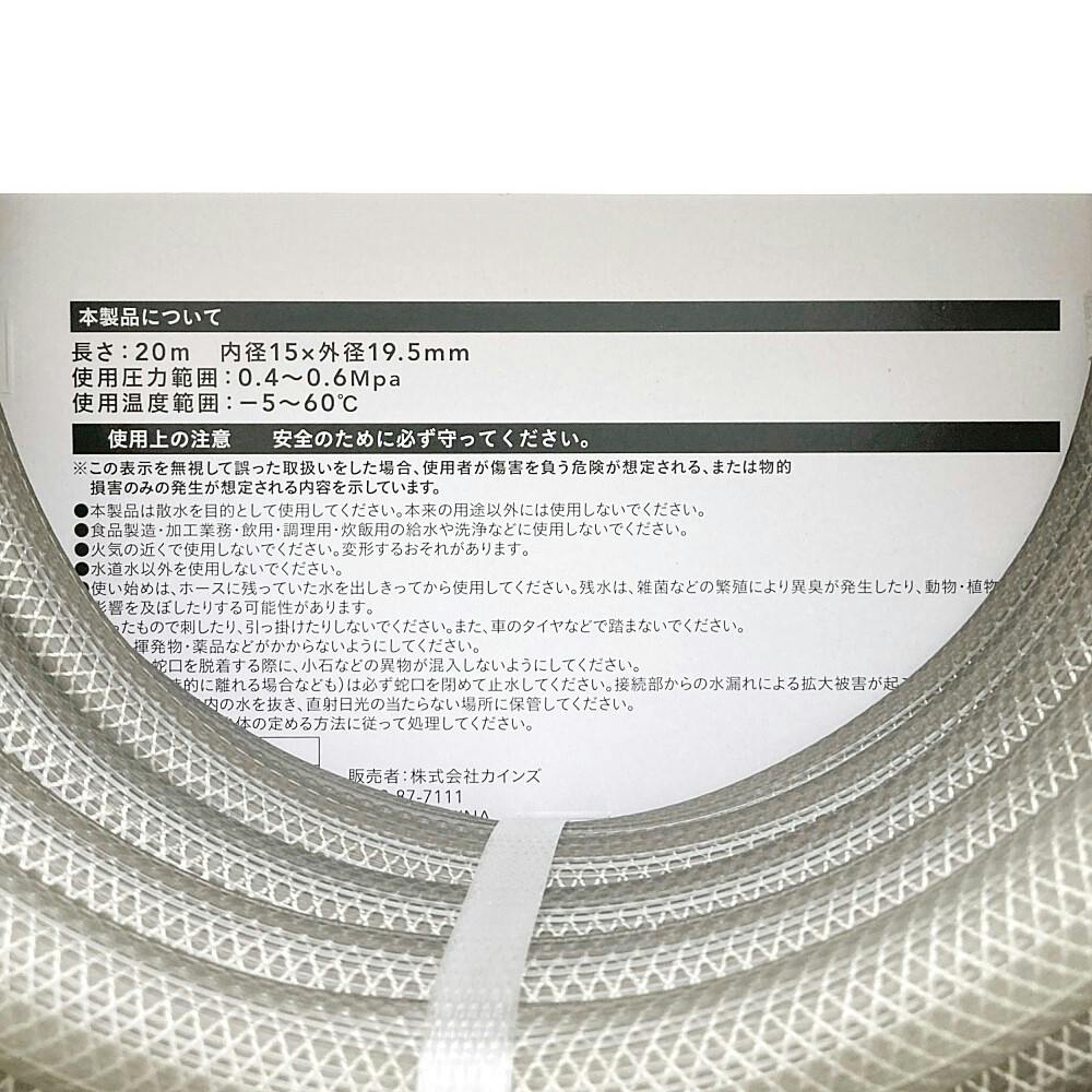 カインズ 散水カットホース 長さ20m 外径20mm 内径15mm 使用温度-5度~60度まで