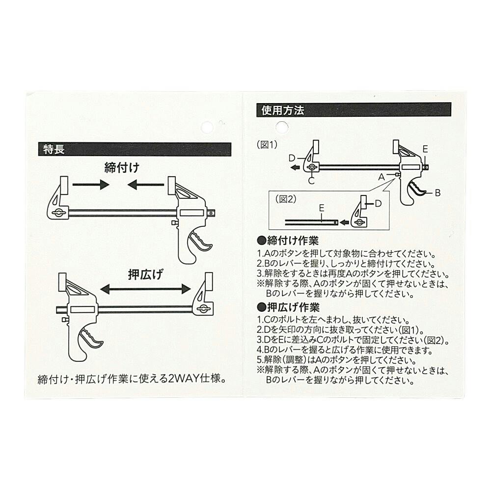 ●締め付け・押し広げに●ボタンを押してスライドすれば作業が素早く、簡単に●本来の用途以外には使用しないで下さい。●本品はDIY用です。大きな負荷のかかる作業には使用しないで下さい。