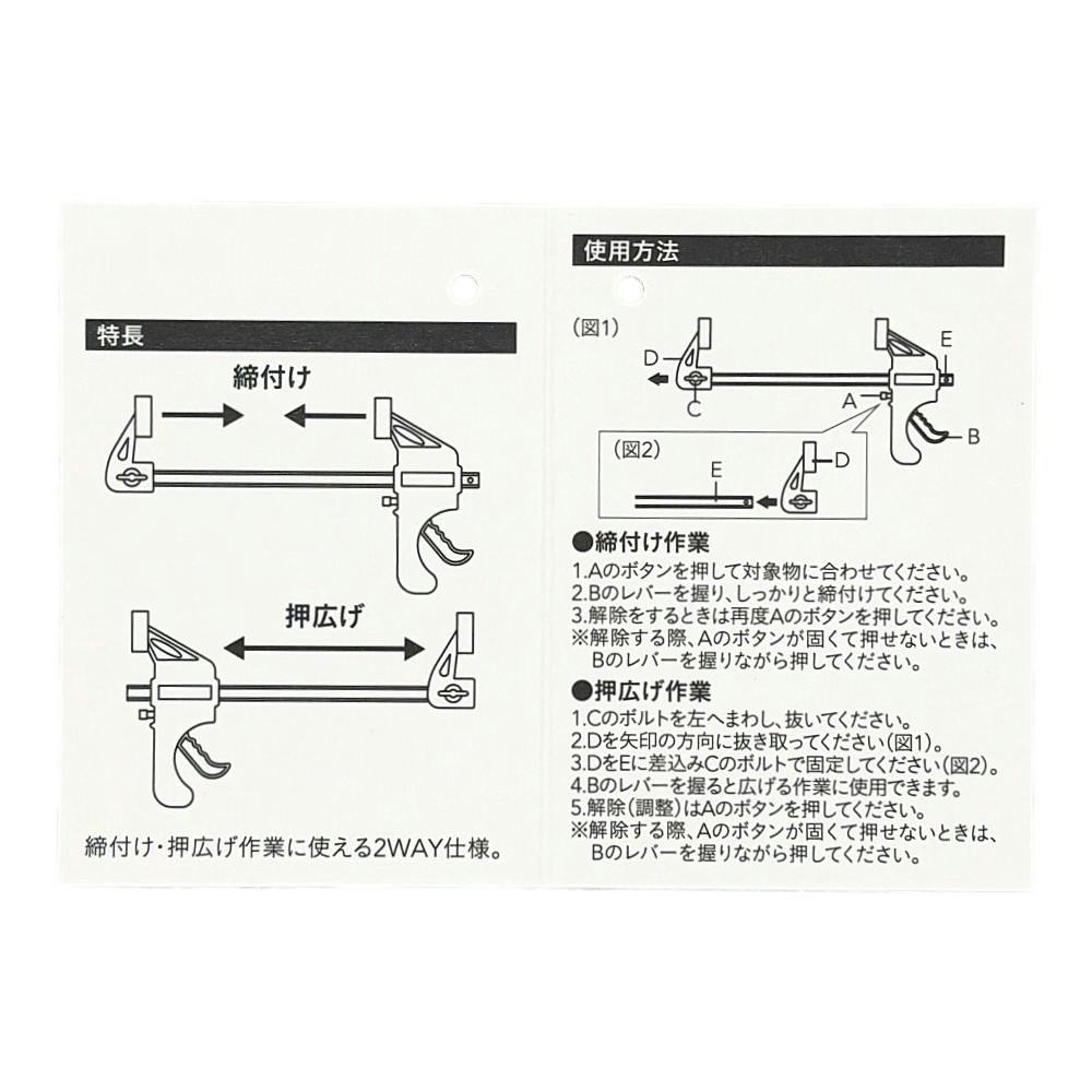 ●締め付け・押し広げに●ボタンを押してスライドすれば作業が素早く、簡単に●本来の用途以外には使用しないで下さい。●本品はDIY用です。大きな負荷のかかる作業には使用しないで下さい。