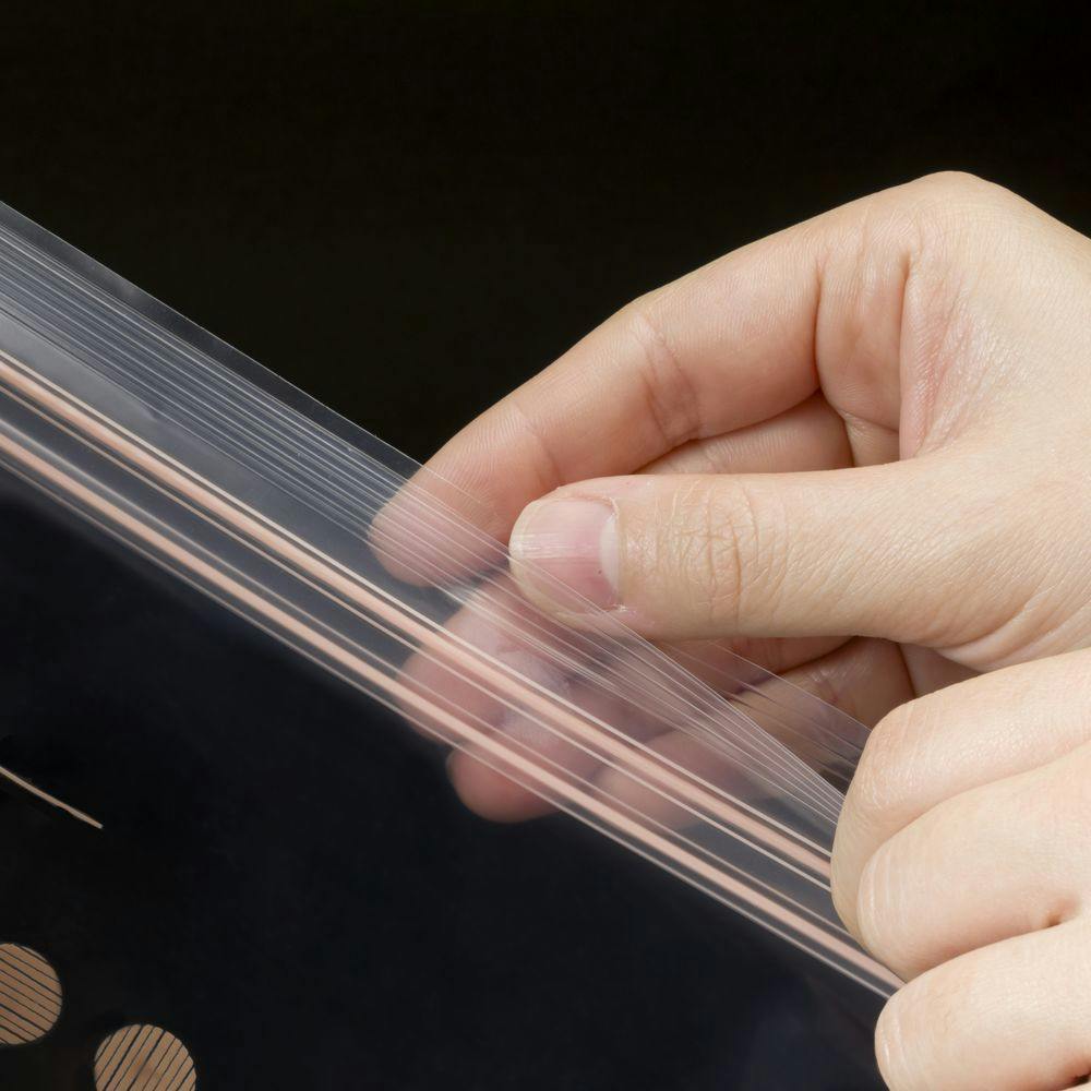 袋を閉める際は、空気を抜きながらジッパーの端から端まで指で押さえて閉めてください。
