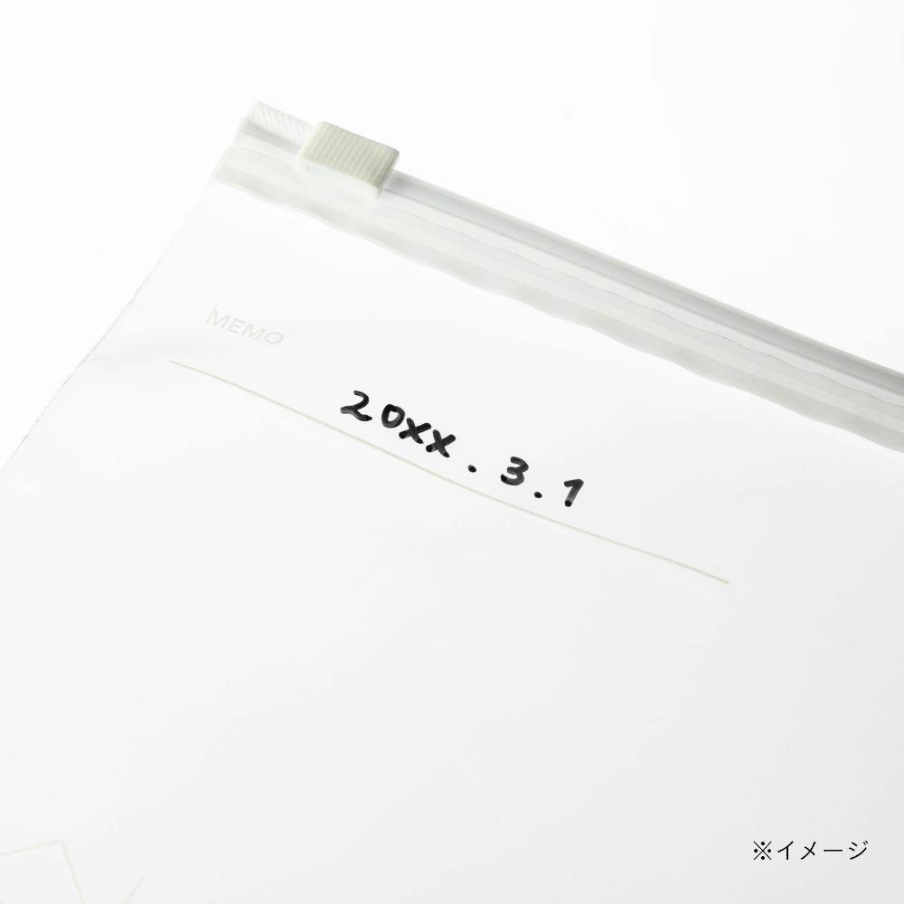 ●スライダー式で開け閉めラクラク●マチ付きでたっぷり入る●食べ物の保存や、小物の仕分け・持ち運びに●メモスペースつき●冷蔵冷凍OK