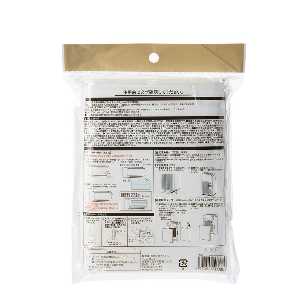 エアコン・空気清浄機 兼用フィルター 4枚入り