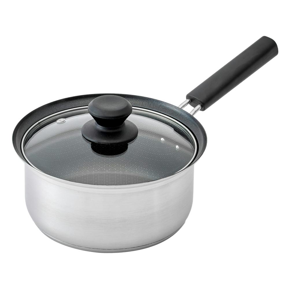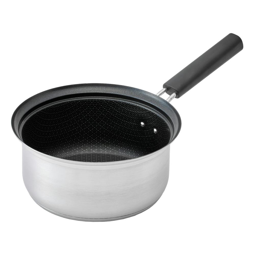 内面/ふっ素樹脂塗膜加工 本体/ステンレス鋼 二層底/アルミニウム合金 取っ手/フェノール樹脂