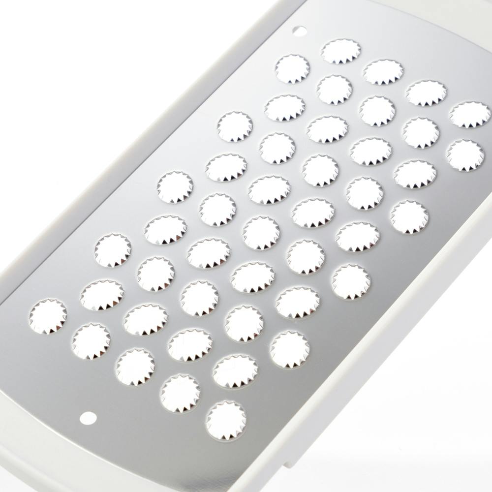 ●刃の形状により、往復で素早くおろせる ※往復で使用する際は本体を水平にして使用することをおすすめします ●ボウルなどのフチに固定できる溝付き ●ステンレス製の刃使用