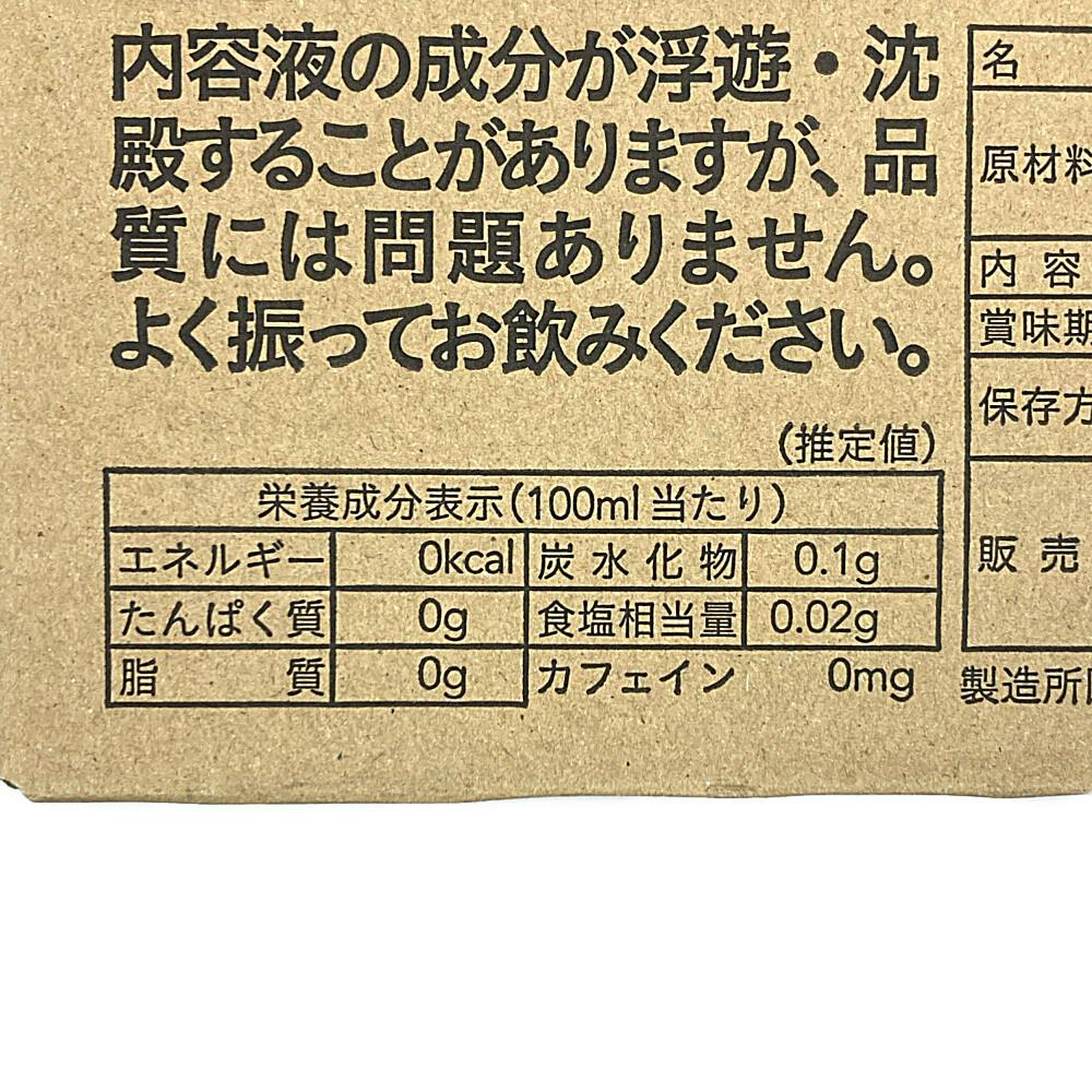 エネルギー0kcal、たんぱく質0g、脂質0g、炭水化物0.1g、食塩相当量0.02g、カフェイン0mg