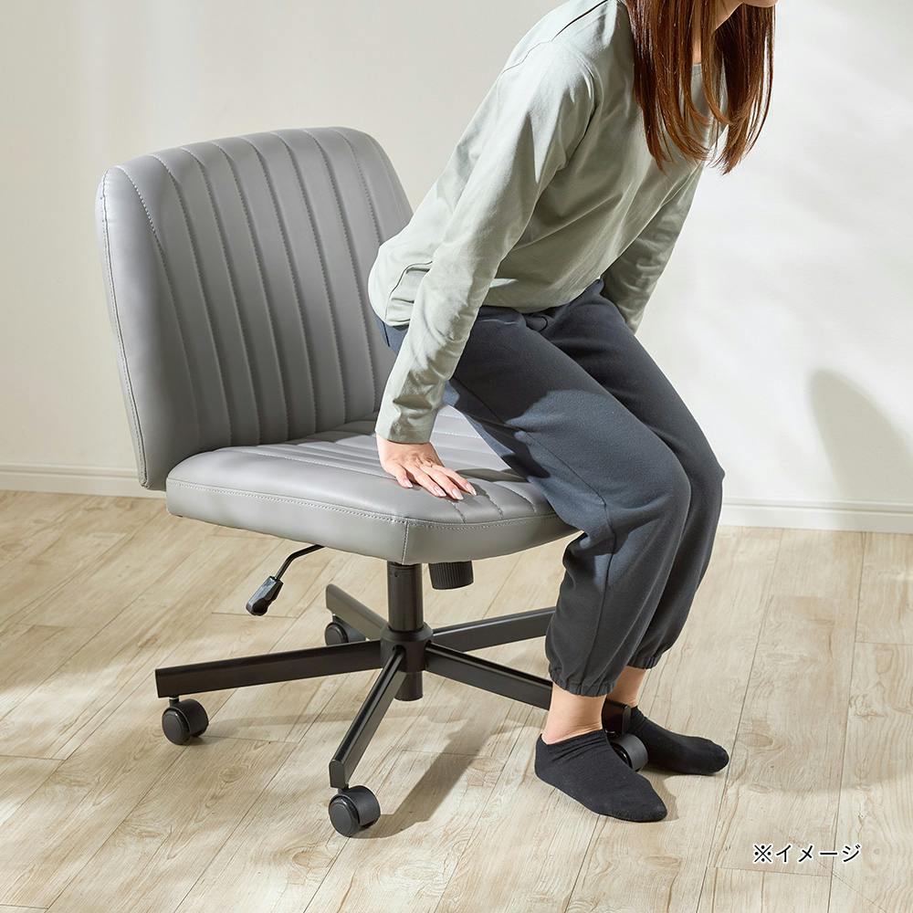 ●座面が広く様々な姿勢で座れる ●座面に手をついて立ち上がりやすい ●フローリングが傷つきにくいキャスター ●背面スウィング機能付き ●座面の高さを調節できる