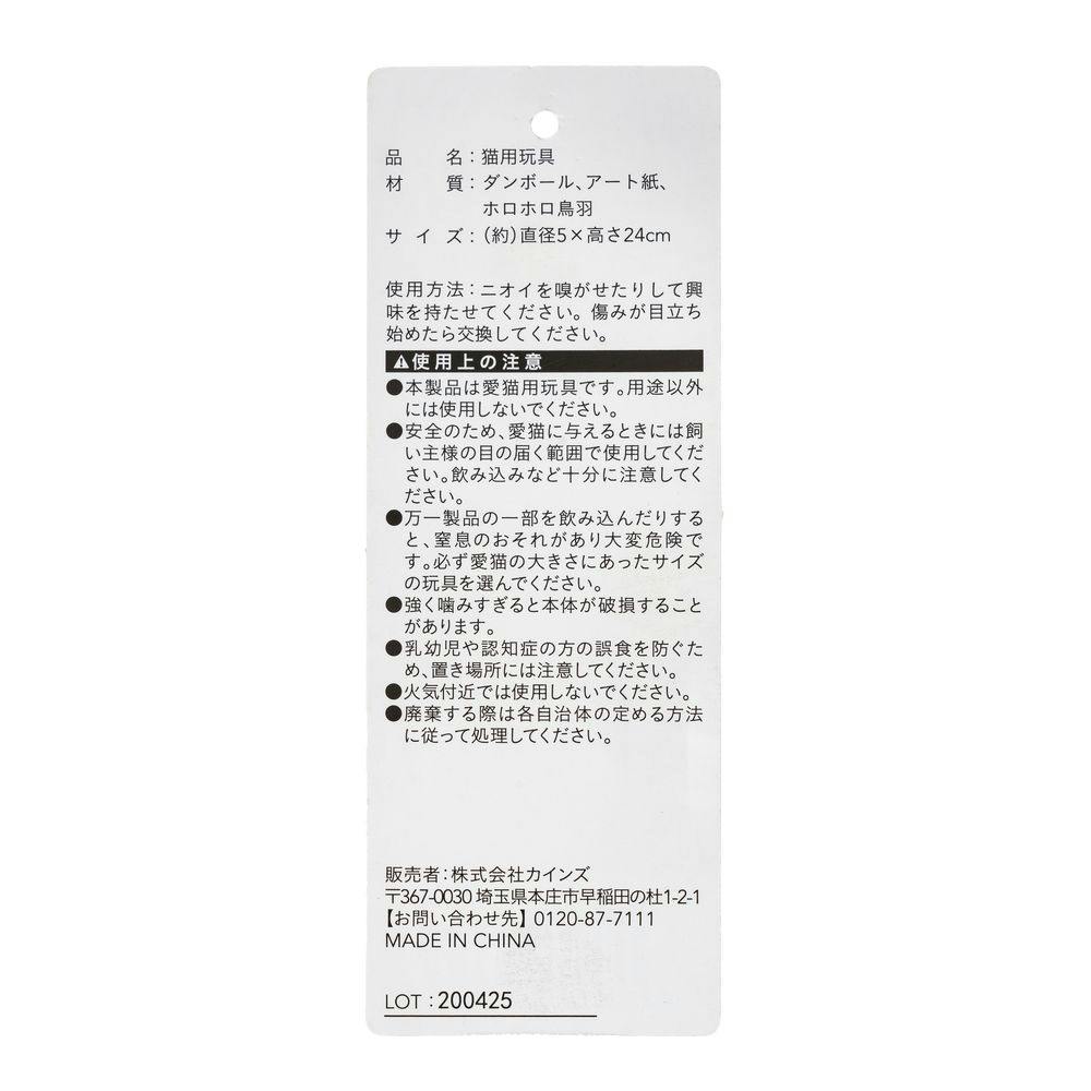 ●本製品は愛猫用玩具です。用途以外 には使用しないでください。 ●安全のため、愛猫に与えるときには飼 い主様の目の届く範囲で使用してくだ さい。飲み込みなど十分に注意してく ださい。