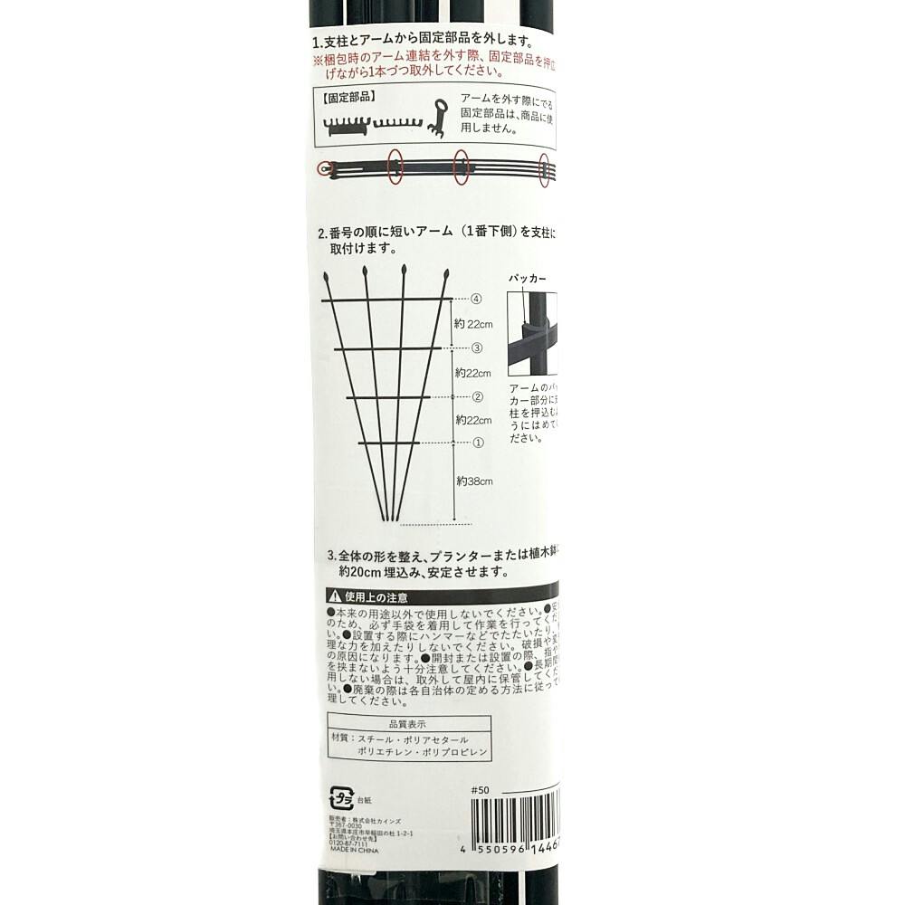 扇形のトレリス。アームの着脱が簡単に行えるので、ツルが巻付いた状態でもアームの取外しが可能。