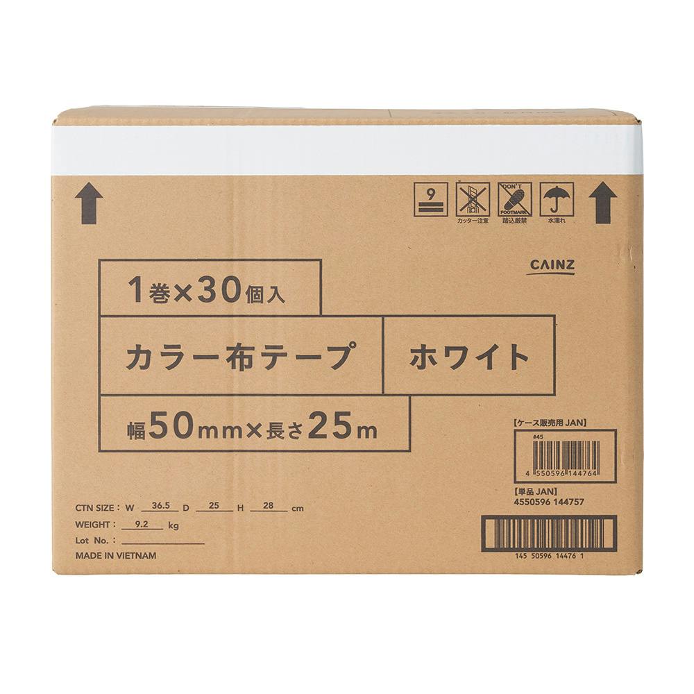 • 【ケース販売】カインズ カラー布粘着テープ ホワイト 幅50mm 長さ25m 1巻×30個入
