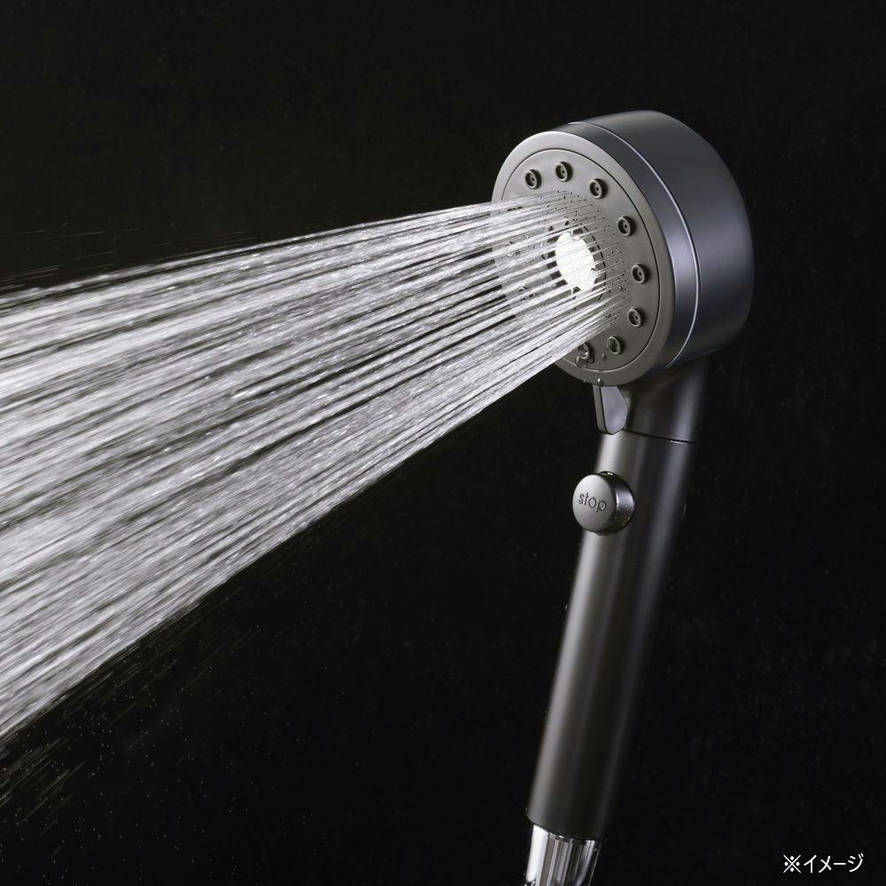 節水。手元でストップ。柔らかい肌あたり。5段階水流を切り替えできる。ミストシャワー付き。超極細ナノバブルが発生。