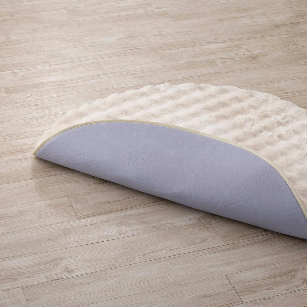 ホットカーペット・床暖房可、アルミ入りシート保温効果、裏面がズレにくい、シロクマの毛並みのようななめらかな肌触り、防音効果、クッション性