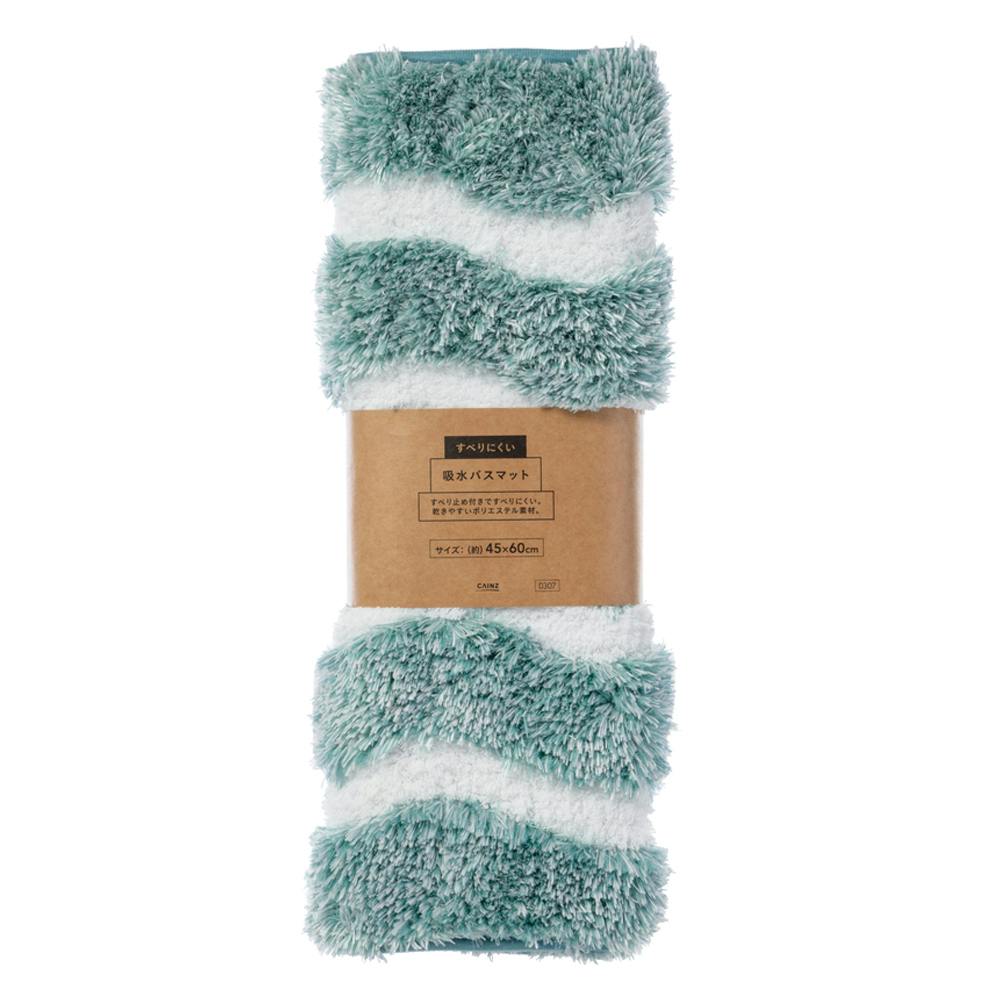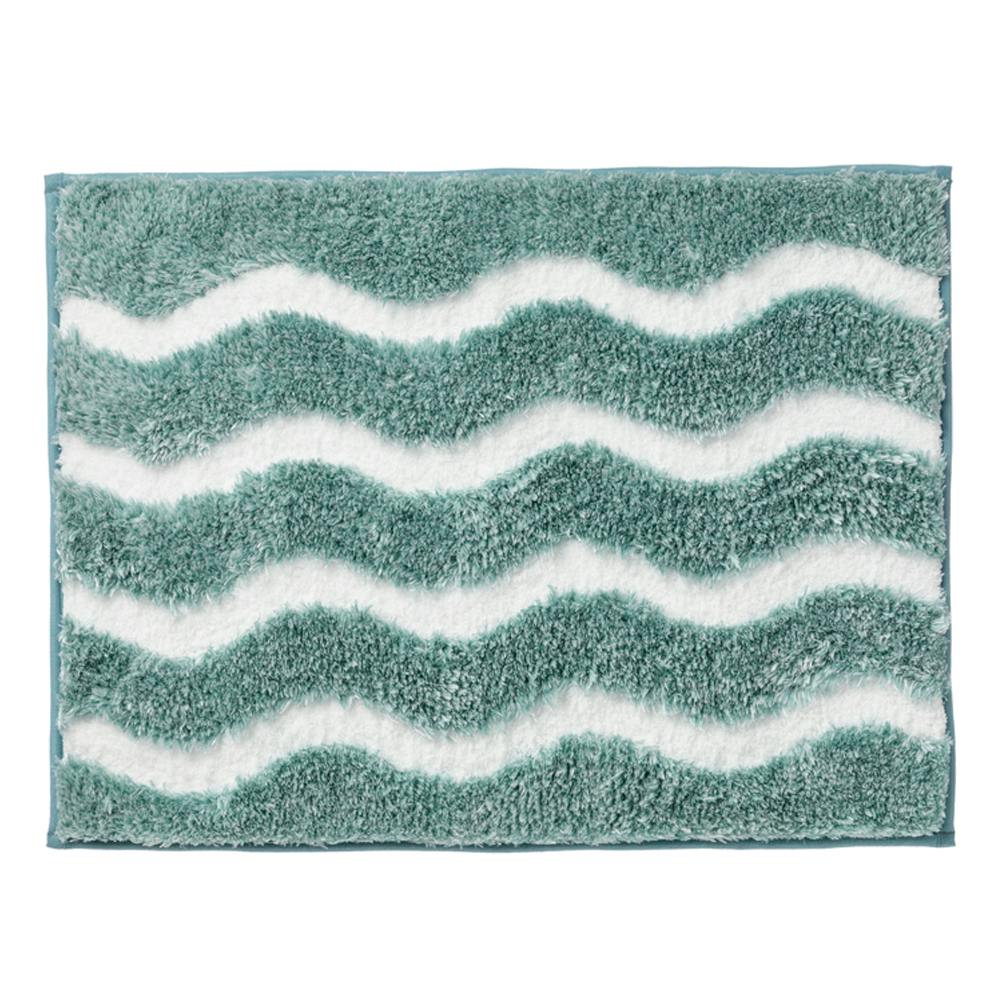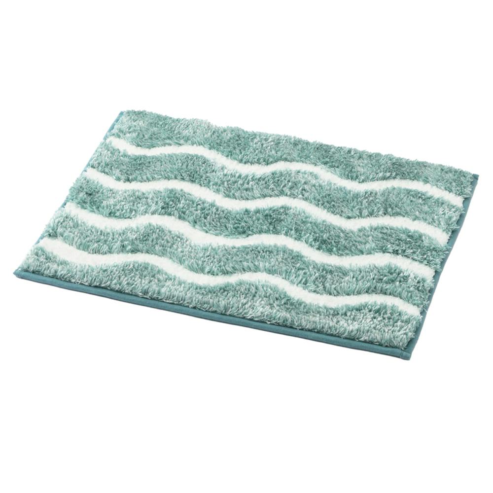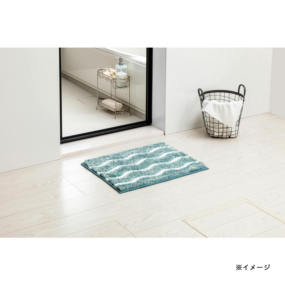 すべりにくい吸水バスマット ウェーブ ブルー 幅60cm 奥行45cm