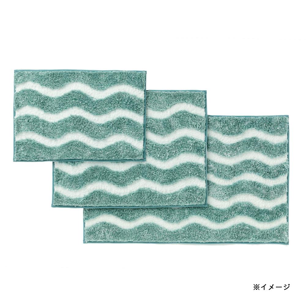 • すべりにくい吸水バスマット ウェーブ ブルー 幅60cm 奥行45cm
