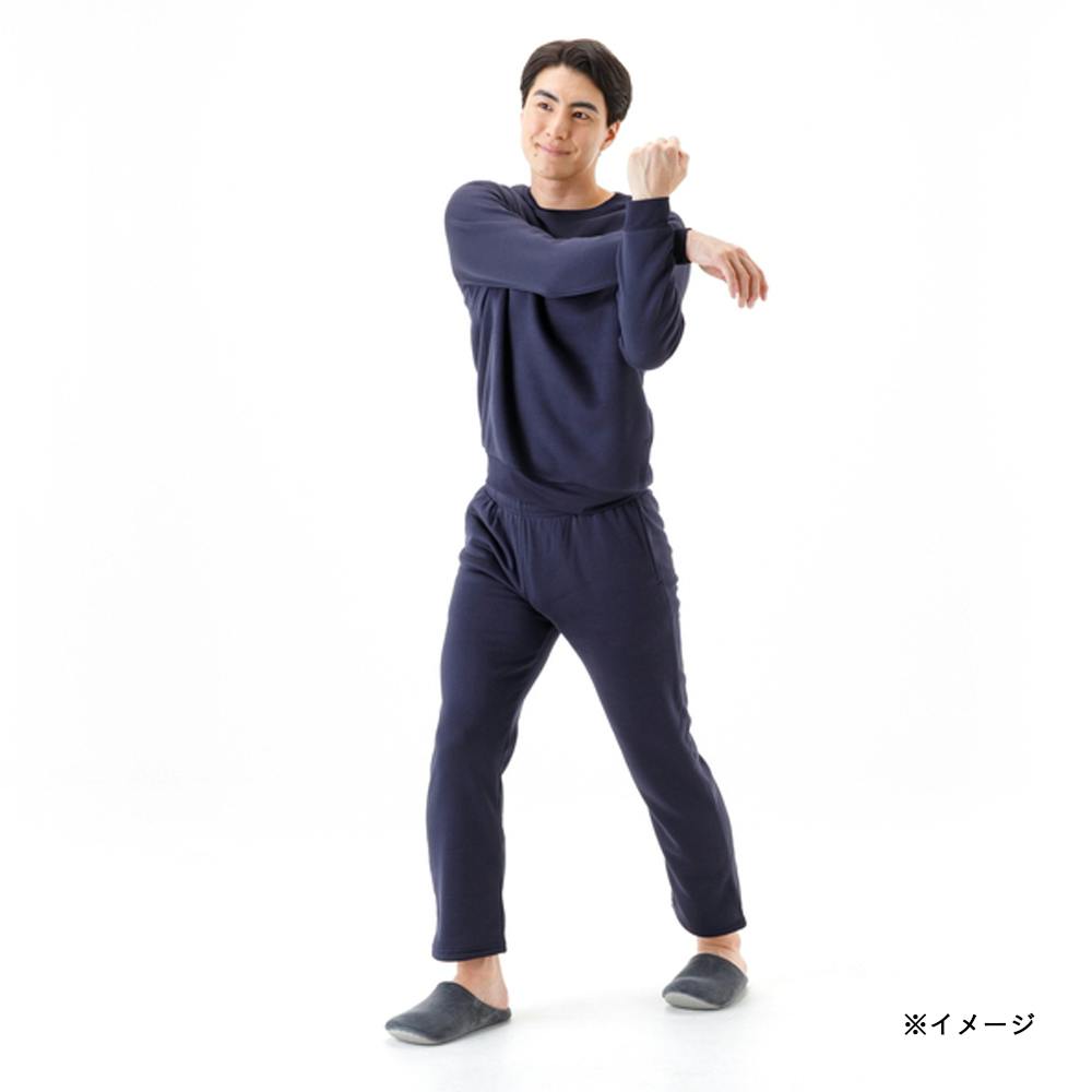 Hot fine 軽くてあたたかい裏起毛ルームウェア 上下セット 保温 ストレッチ ネイビー LL