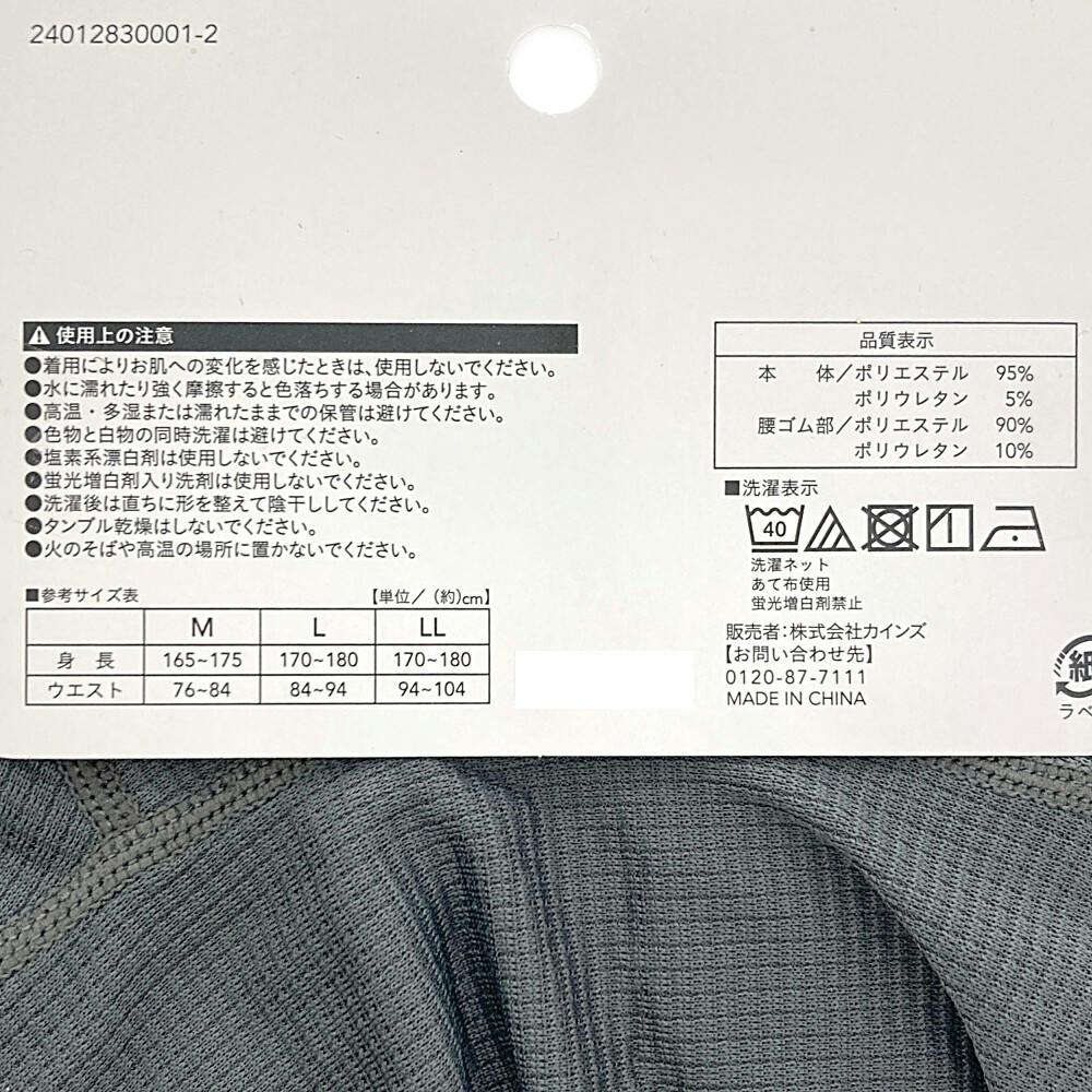 ●本体/ポリエステル95%、ポリウレタン5% ●腰ゴム部/ポリエステル90%、ポリウレタン10%