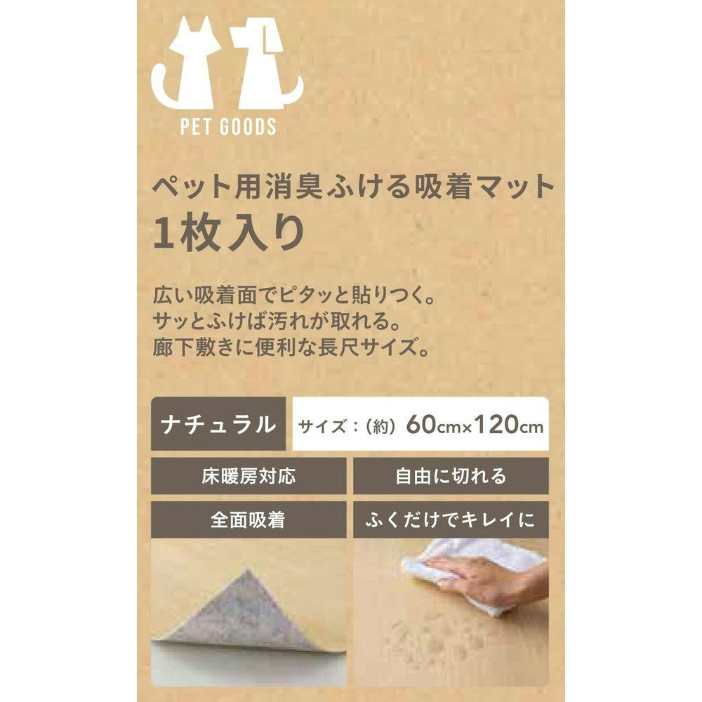 ペット用消臭拭ける吸着マット 幅60cm 奥行120cm ナチュラル