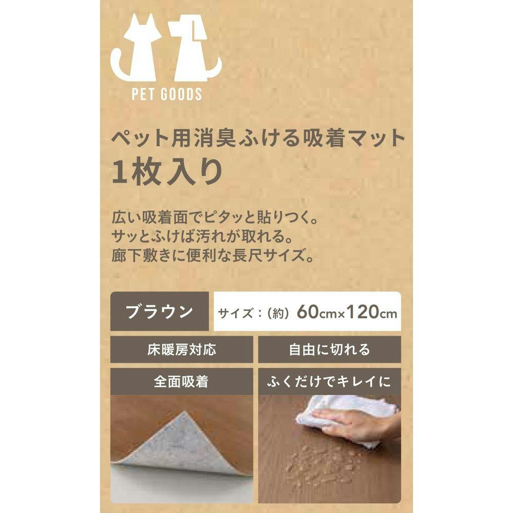 ペット用消臭拭ける吸着マット 幅60cm 奥行120cm ブラウン