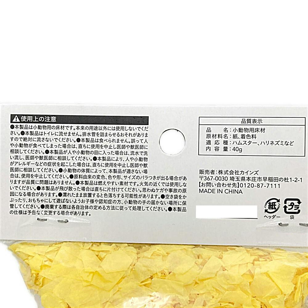●本製品は小動物用の床材です。本 来の用途以外には使用しないでくだ さい。●本製品はトイレに流せませ ん。排水管を詰まらせるおそれがあり ますので絶対に流さないでください。