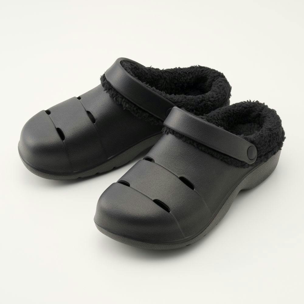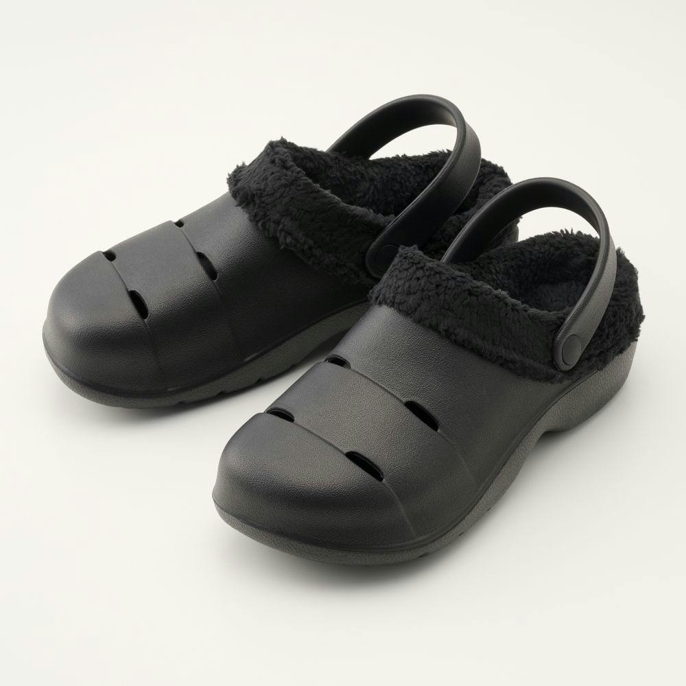 屈曲しやすいスリット入りボア付きサンダル ブラック L