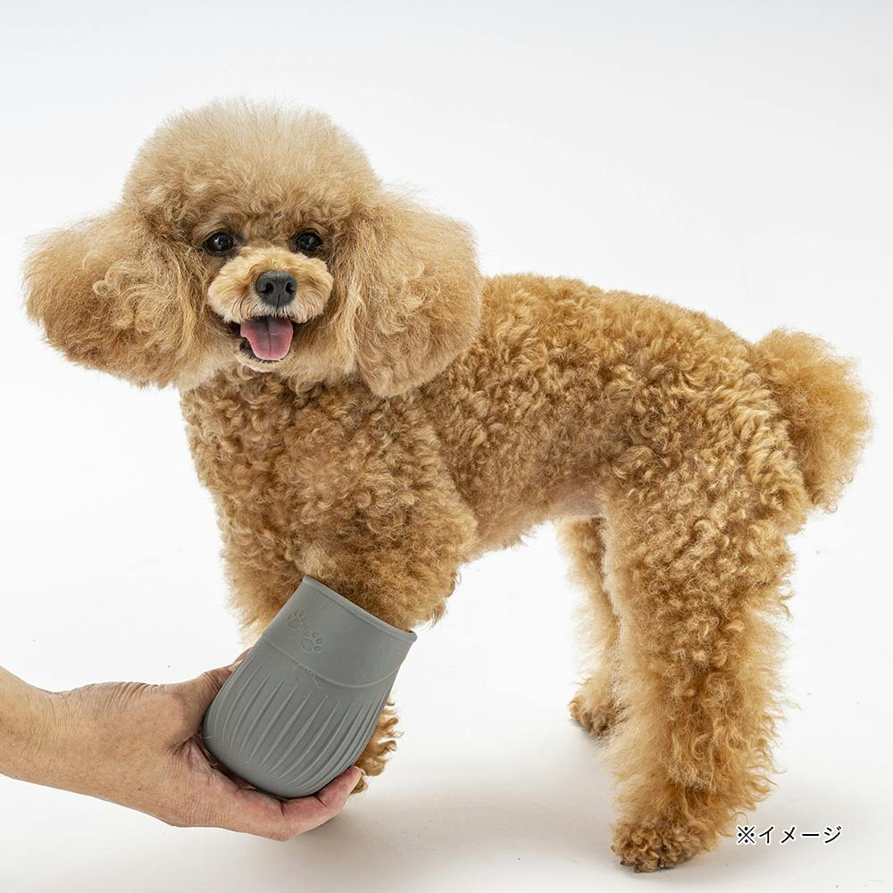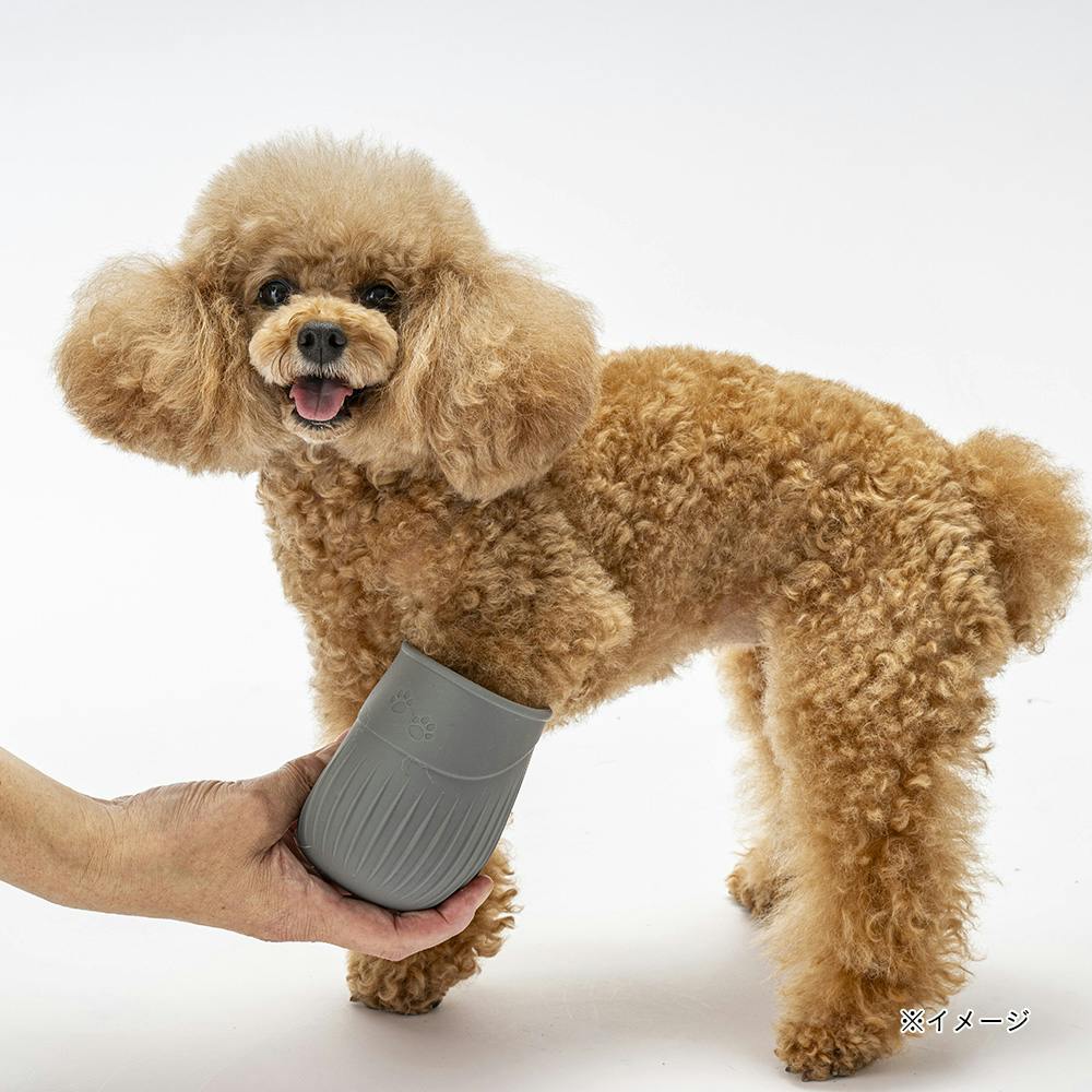 カップの半分位まで水を入れ、愛犬の足をカップの中に 入れて、カップを回転させたり上下に動かしたりしてくださ い。※愛犬の足をカップに入れた際に、水があふれでる場 合があります。