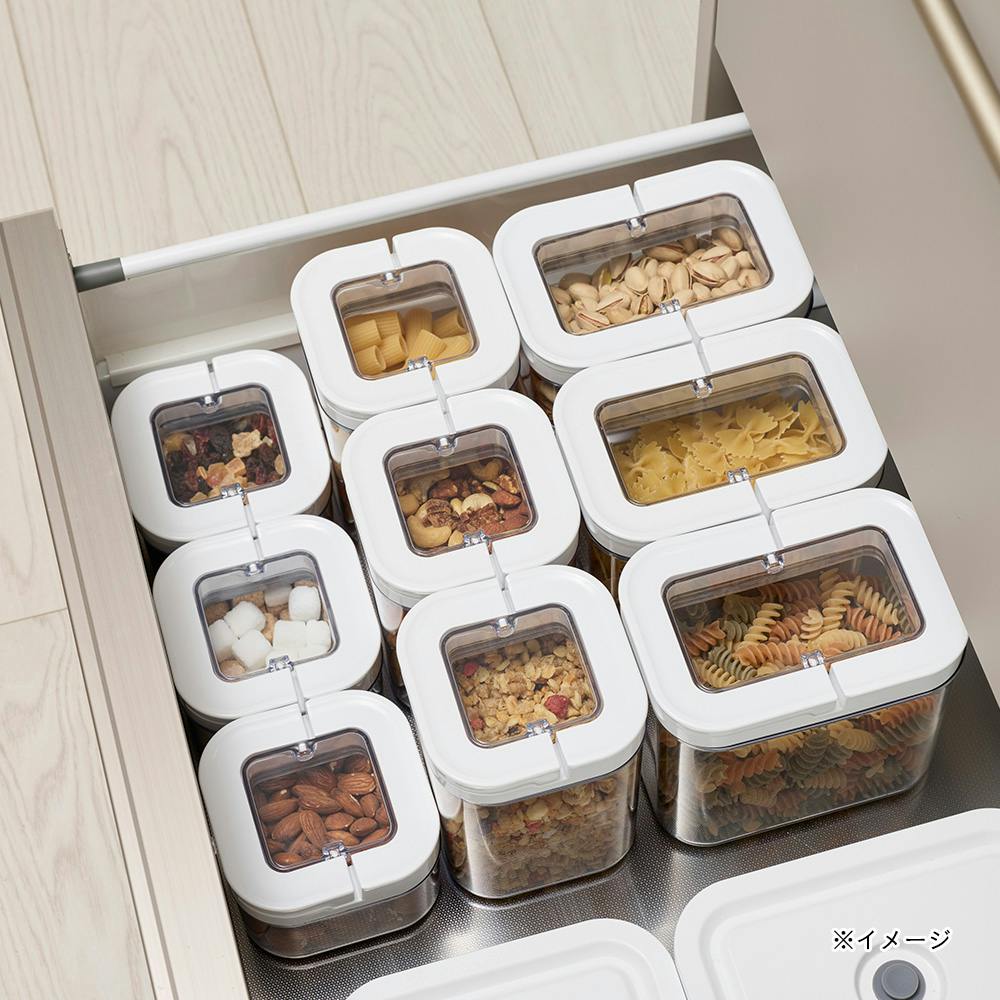 ●レバー式のフタで簡単にロックできる ●上から見えて、中身を確認しやすい ●スタッキング可能ですっきり収納できる