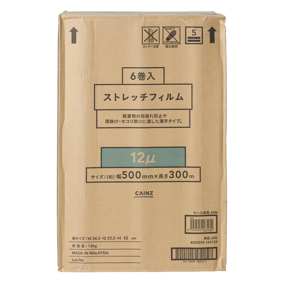 【ケース販売】カインズ ストレッチフィルム12μ 幅500mm 300m 6巻入