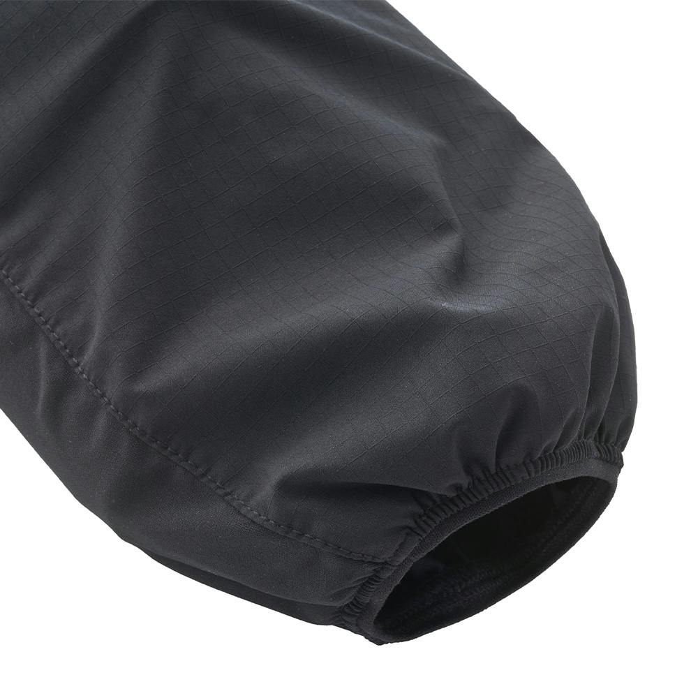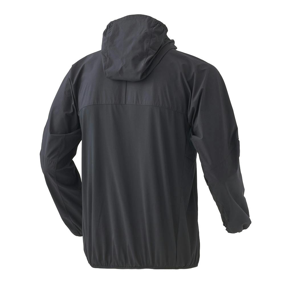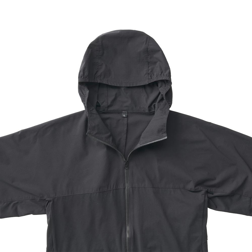 フード部・ボディ上部・袖上部:複合繊維(ポリエステル)100%/ボディ下部・袖下部:複合繊維(ポリエステル)50%、ポリエステル50%/はっ水(水がはじきやすい)
