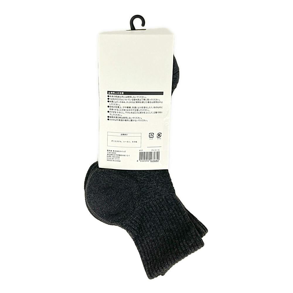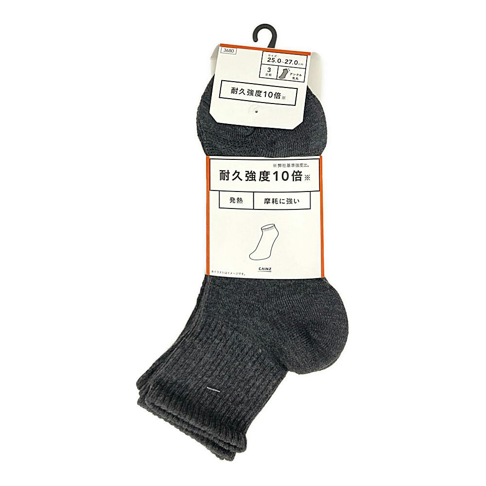 カインズ 紳士 耐久強度10倍 発熱靴下 アンクル丈 チャコールグレー 25.0cm-27.0cm 3足組