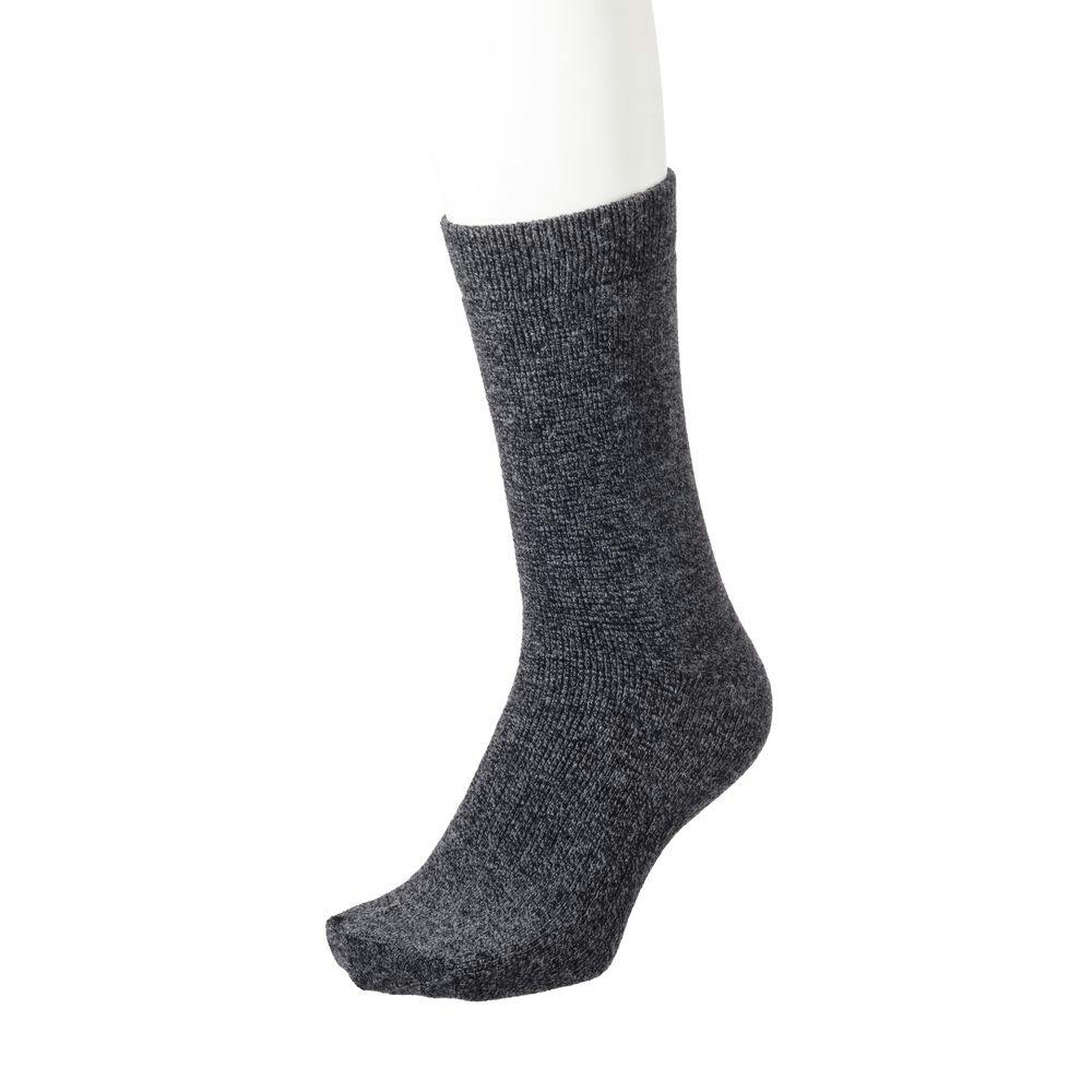 カインズ メリノウール靴下 保湿 保温 内側総パイル クルー丈 杢ブラック 25.0cm-27.0cm