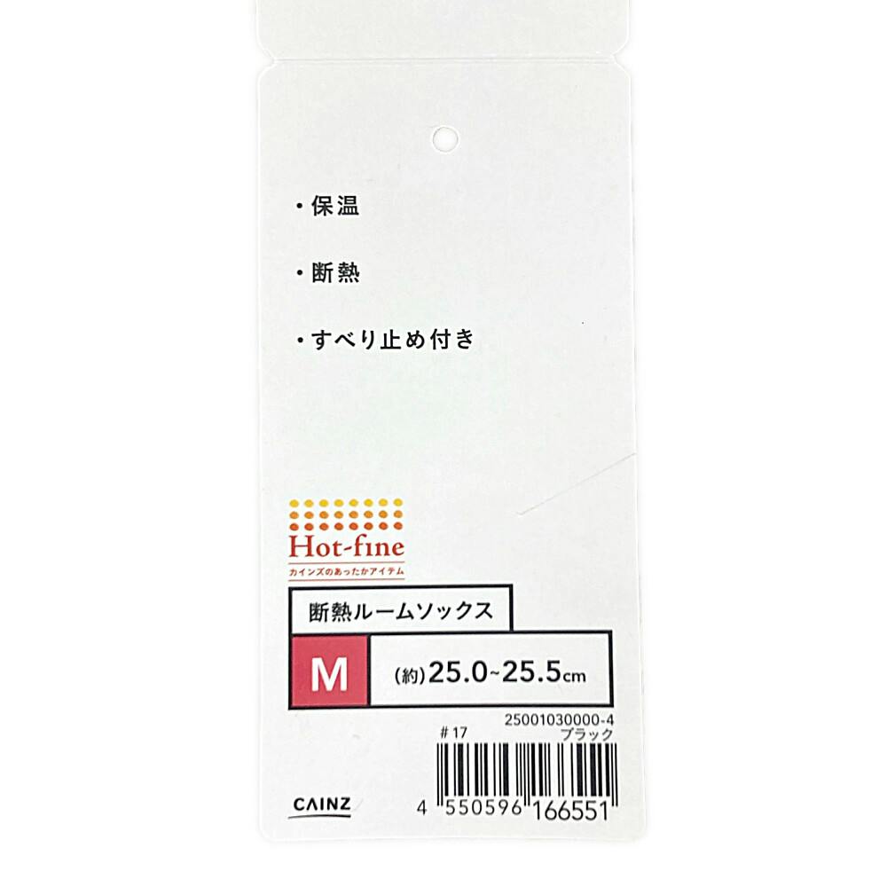 Hot fine 断熱ルームソックス すべり止め付 ブラック M 25.0cm-25.5cm