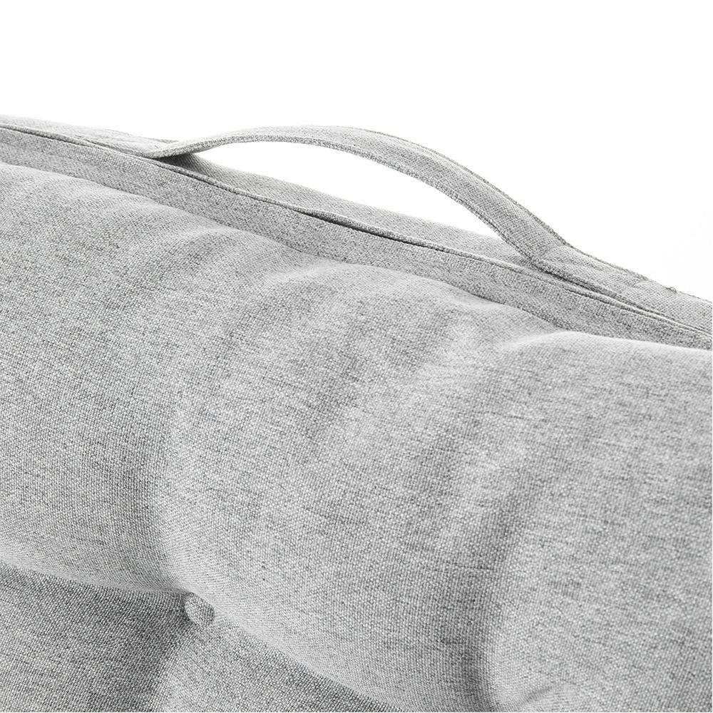 ちょっとずらしたり、持ち上げたりするのに便利な持ち手付き。背もたれ部分は外して洗える。床面はすべり止め加工でズレにくい。14段階のリクライニングで自分の好きな角度で寄りかかることができる。背もたれ・足置き・座布団として多用途に使える。