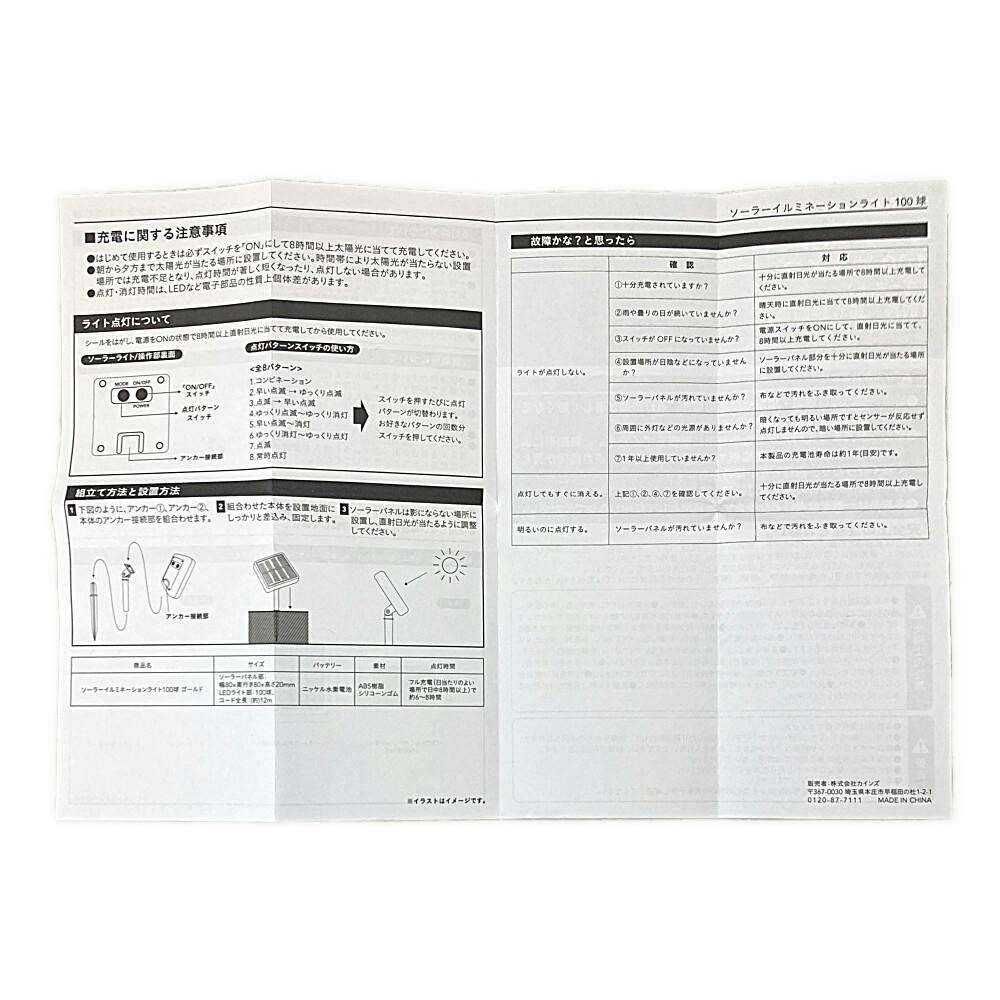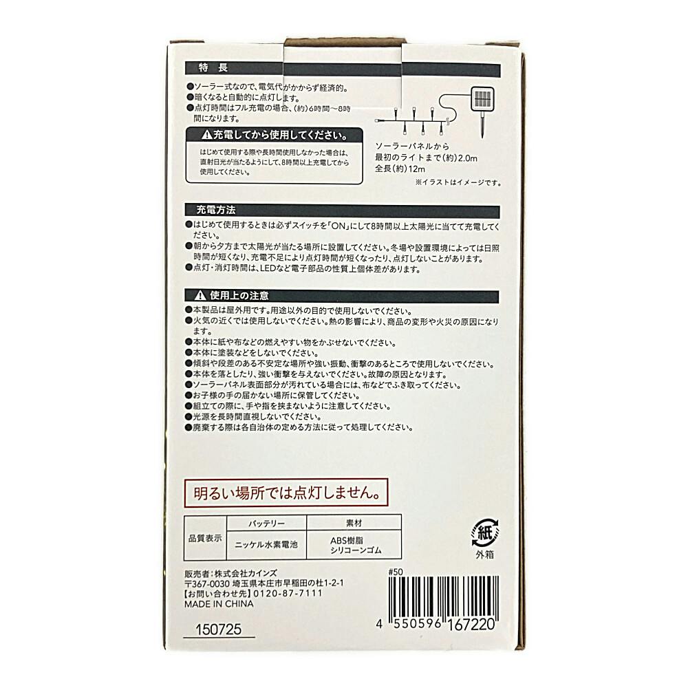 ●100球タイプ ●電源不要、充電時間:晴天下8時間以上、点灯時間:(約)6時間※季節・天候により異なります ●8段階の点灯パターン など
