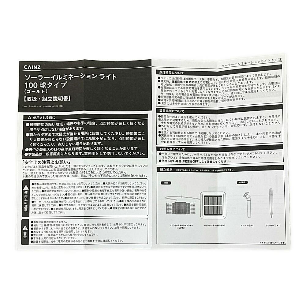ソーラーイルミネーションライト ゴールド 100球