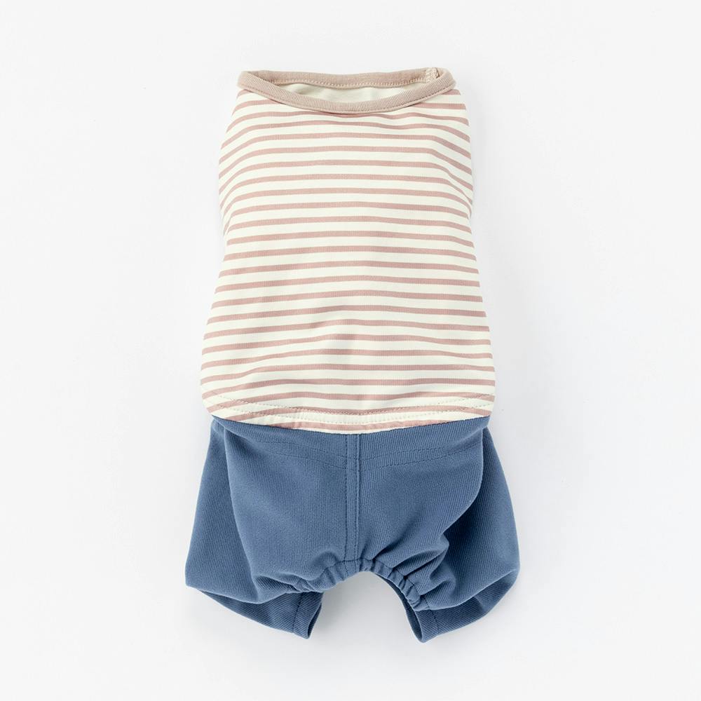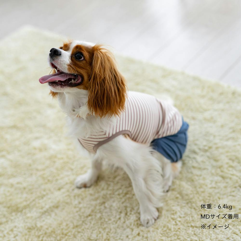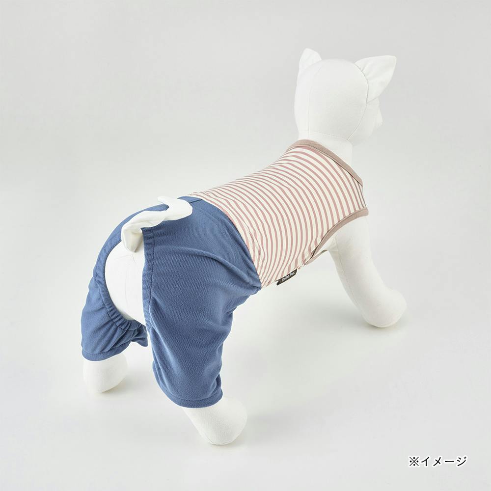 【送料無料】ズボン付ボーダーカットソー ベージュ Mサイズ ペット服(犬の服)