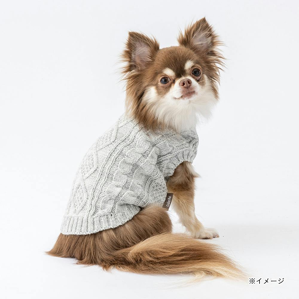 【送料無料】ケーブルニット グレー Lサイズ ペット服(犬の服)