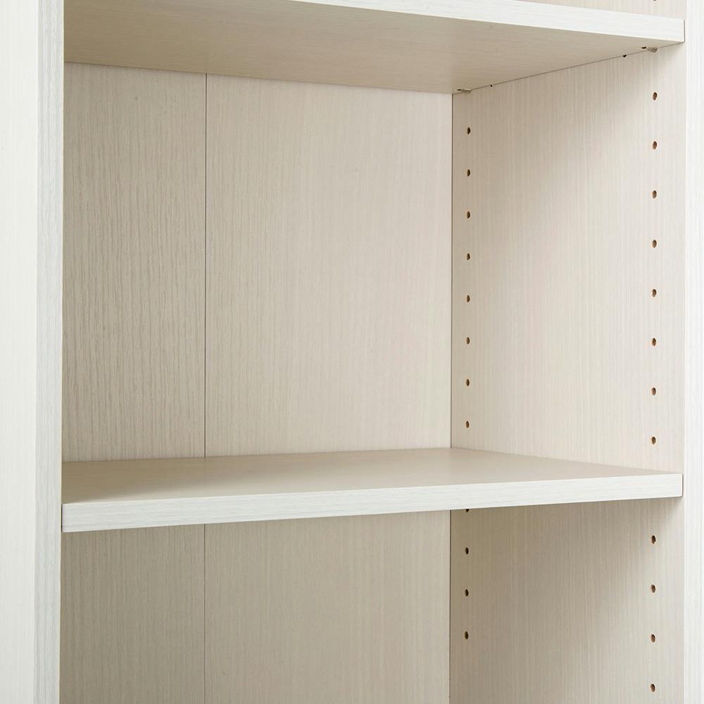 ●収納物に合わせて棚を移動。●ネジで固定すればヨコ置きもOK。