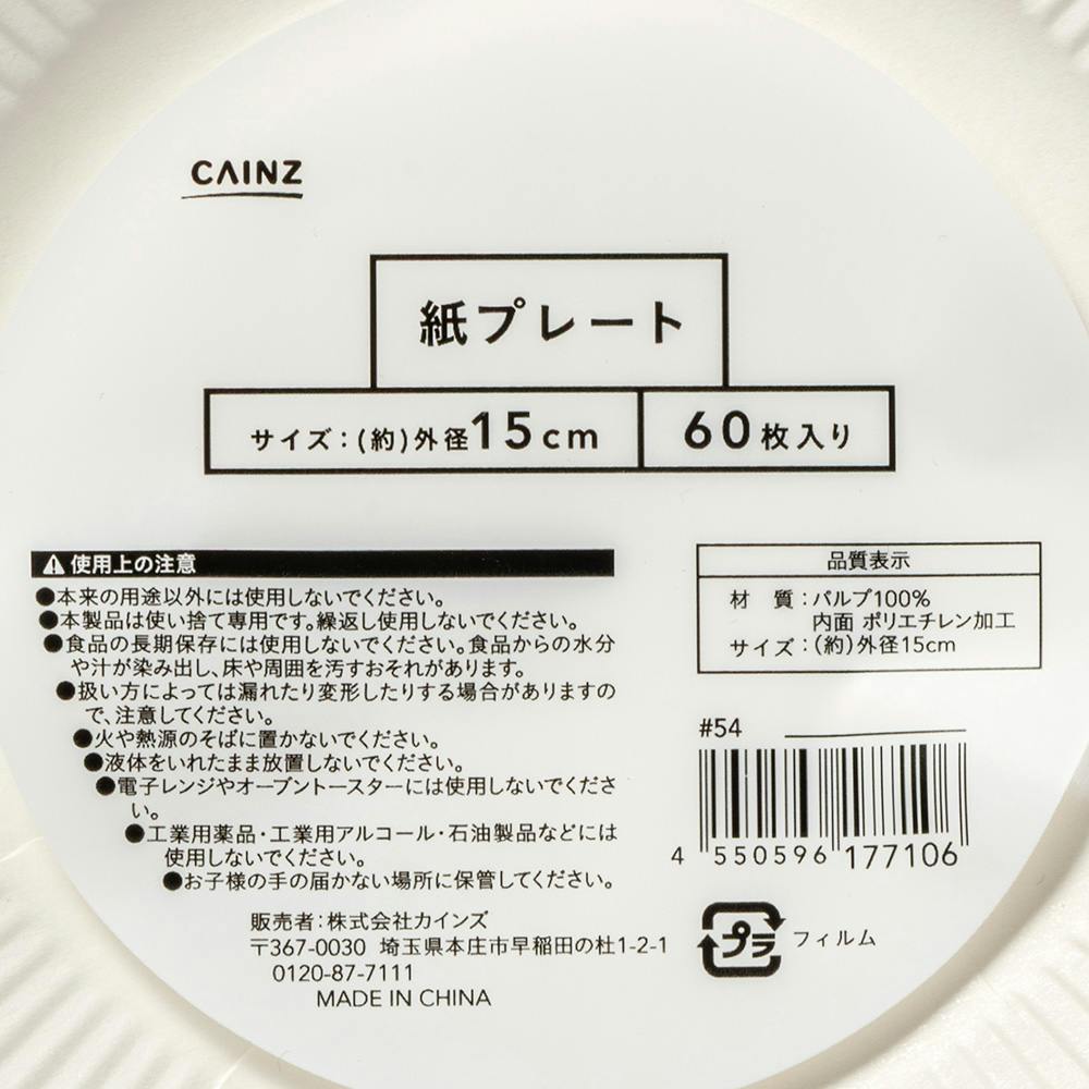 紙プレート 15cm 60枚入り