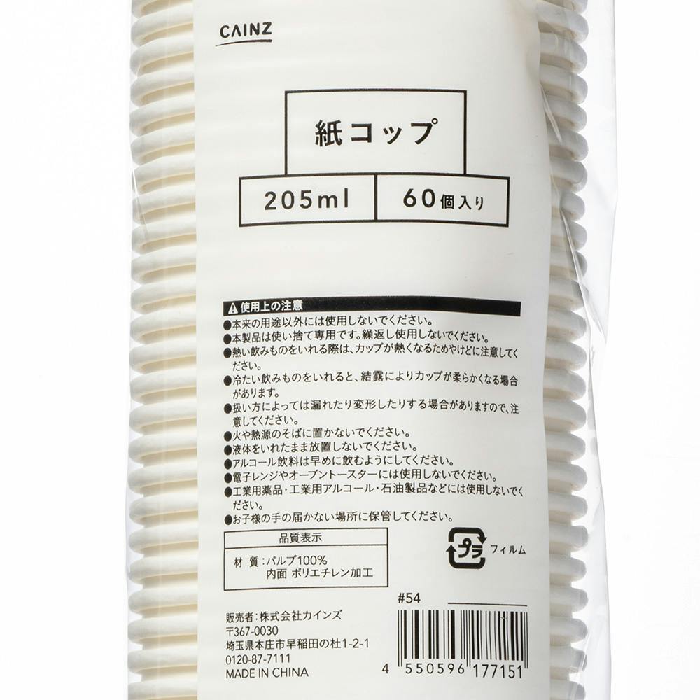 紙コップ 205ml 60個入り